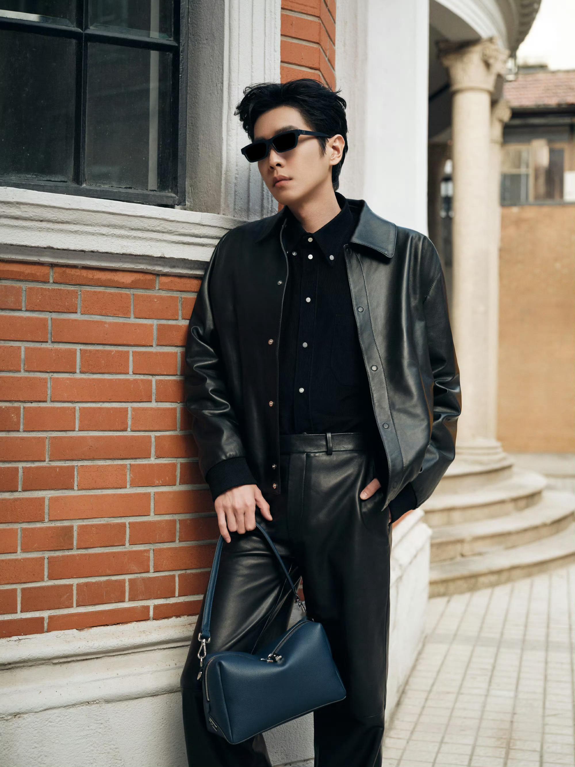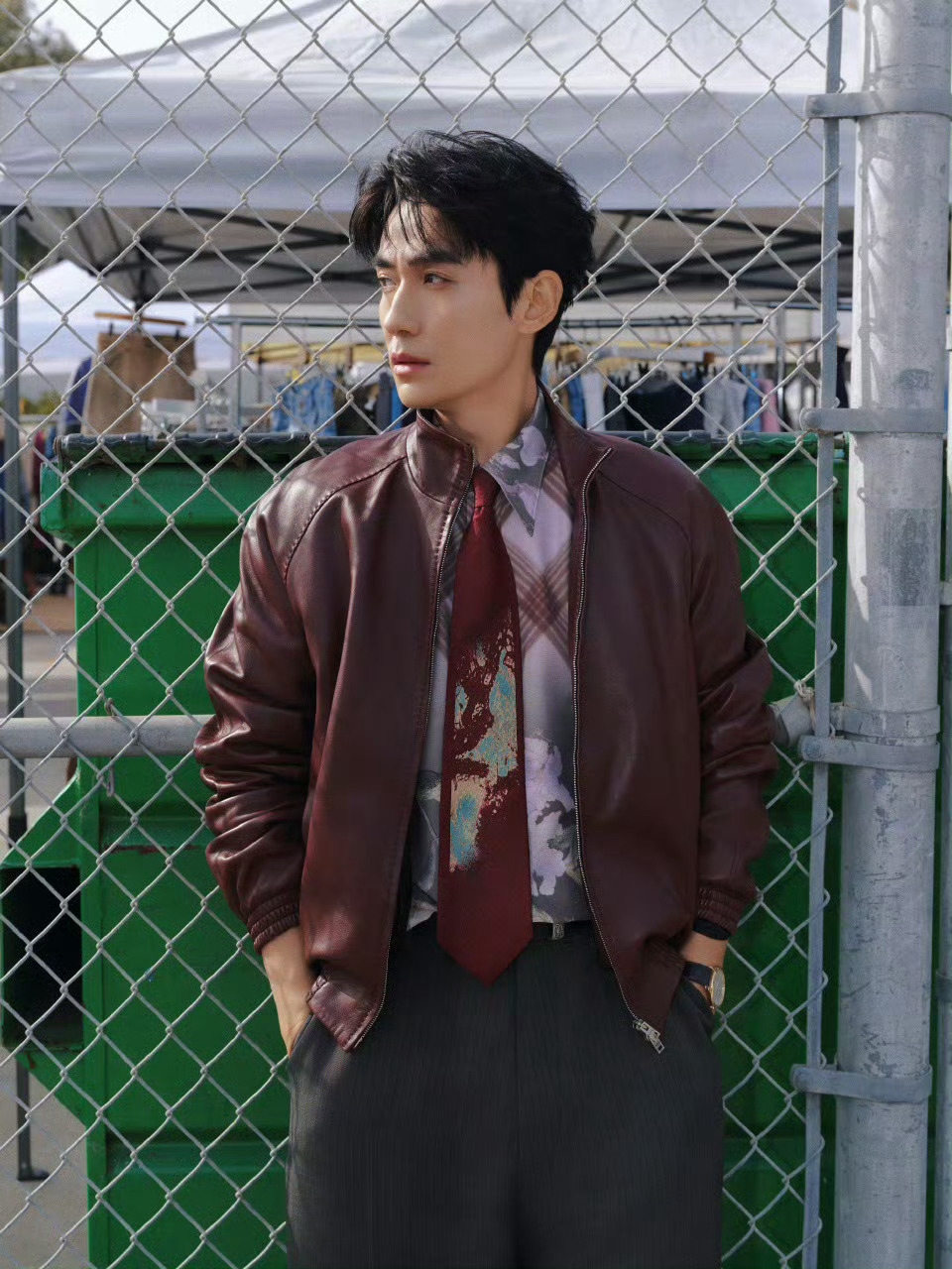 男明星的皮衣造型:2025年,男士皮衣从经典的黑色机车款到 酒红、橄榄绿、焦糖棕、巧克力棕等新颜色的出现,让皮衣变得更有个性。