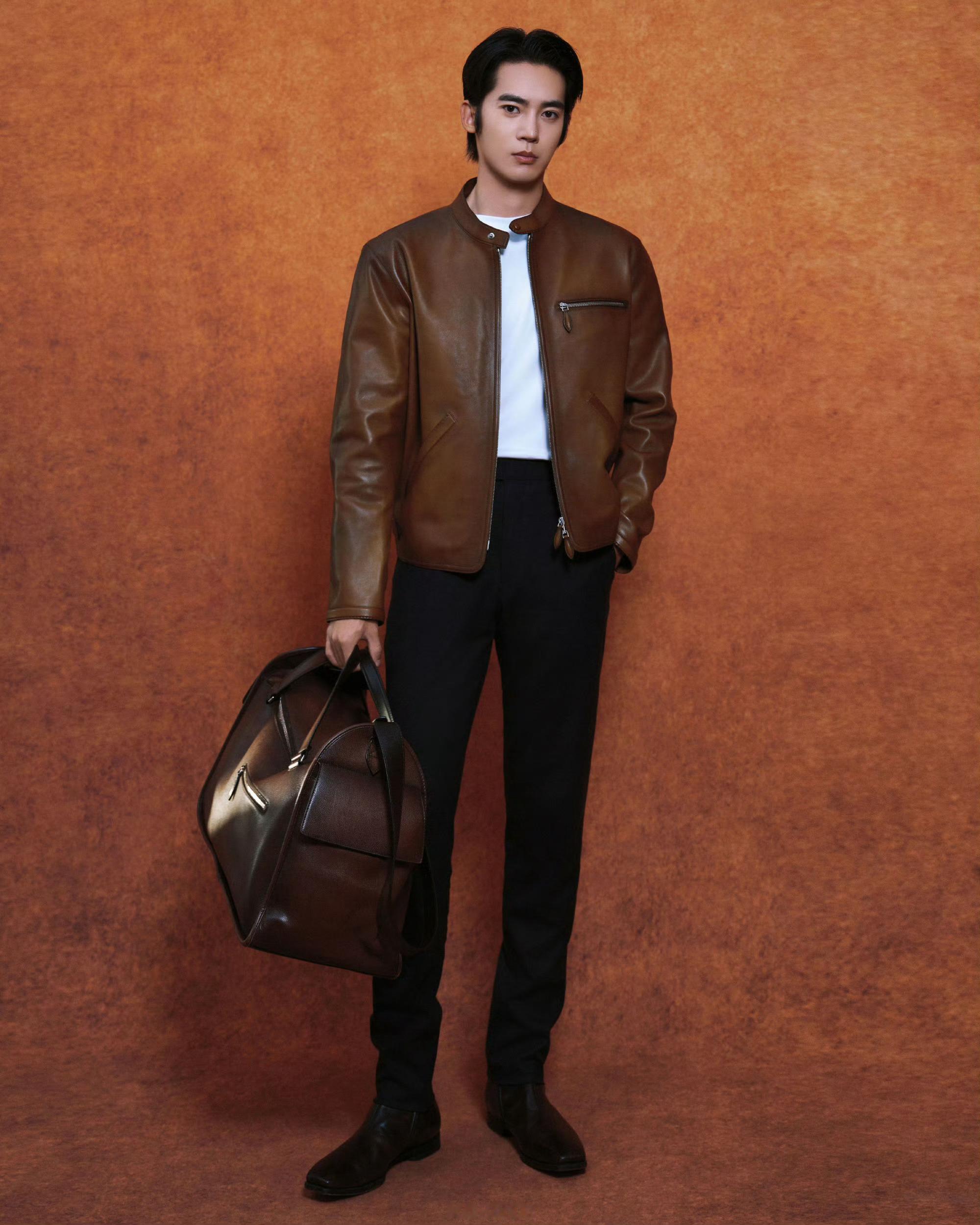 张若昀 in Fendi 2026早春假日系列黑色皮衣
