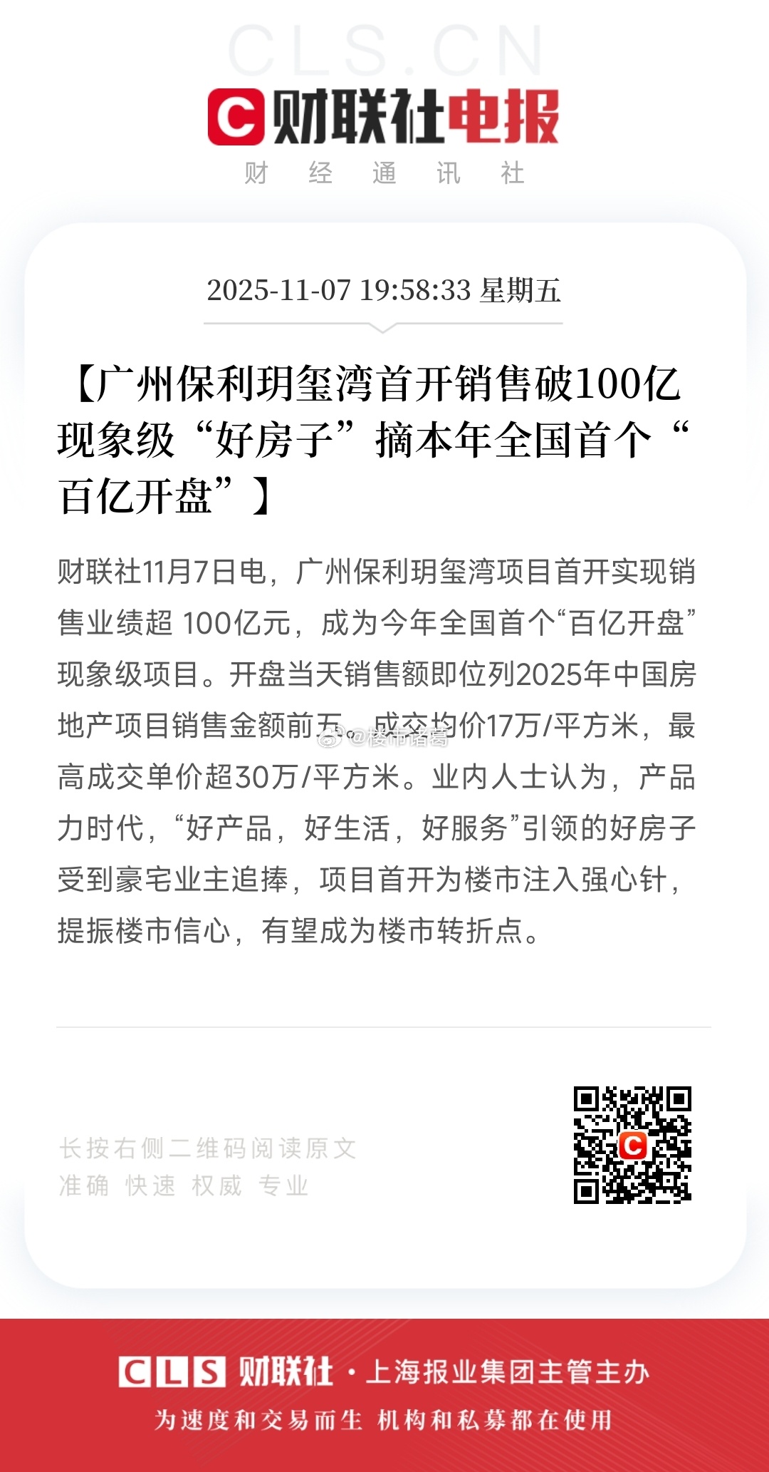 一向安静的广州楼市,昨天出了个豪宅热销盘,开盘卖了106亿,均价17万。。楼市第