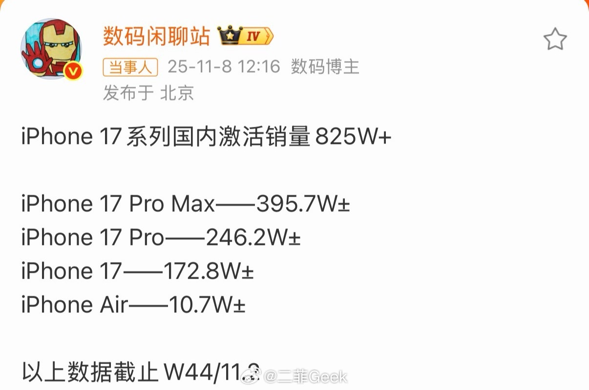 iPhone17系列国内激活销量