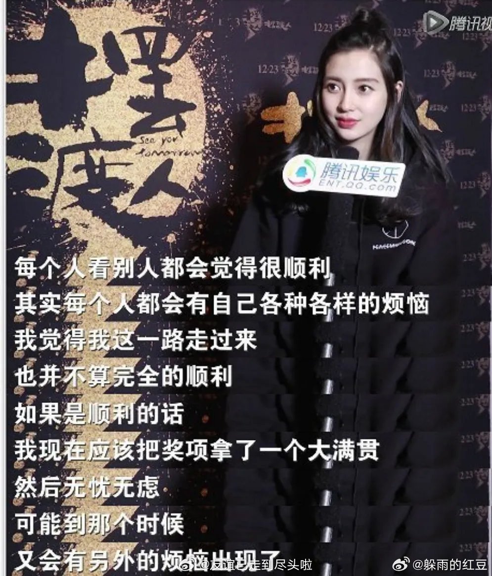网友立即想起Angelababy,2016年凭借《鬼吹灯之寻龙诀》获得大众电影百花奖的最佳女配角。当记者问她是否觉得自己在演艺圈发展很顺利,当年她那句“如果是顺利的话,现在应该把奖项拿了一个大满贯。”