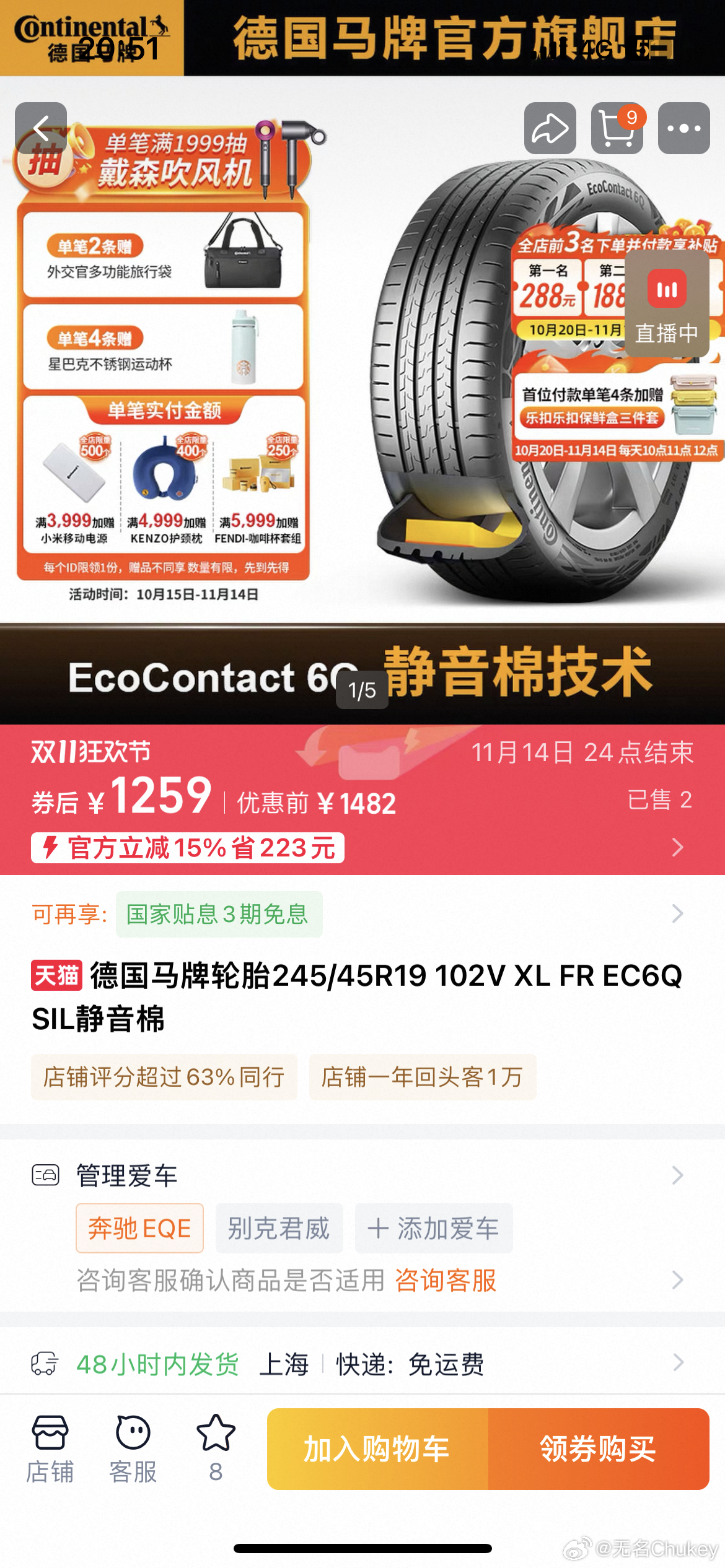 出两条全新未使用,马牌EC6Q带SIL静音棉,245/45 R19 102V XR FR,官方旗舰店售价1259元,我4S买的,买了4条,剩下两条用不着了,1000一条,有没有朋友用得着的[笑cry][笑cry]