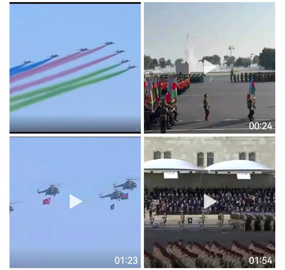 今天,阿塞拜疆军队在该国首都巴库举行了胜利日阅兵,以纪念2020年阿塞拜疆赢得第二次纳卡战争(持续了44天)的胜利。 土耳其和巴基斯坦军人参加了此次阅兵。阿塞拜疆的苏-25战斗机、巴基斯坦的JF-17战斗机和土耳其的F-16战斗机,以及军用直升机在阅兵式中亮相。 今天是阿塞拜疆的“胜利日”(2020年纳卡战争),JF-17 Block 3“枭龙”战斗机在相关庆祝活动期间飞跃库巴。
