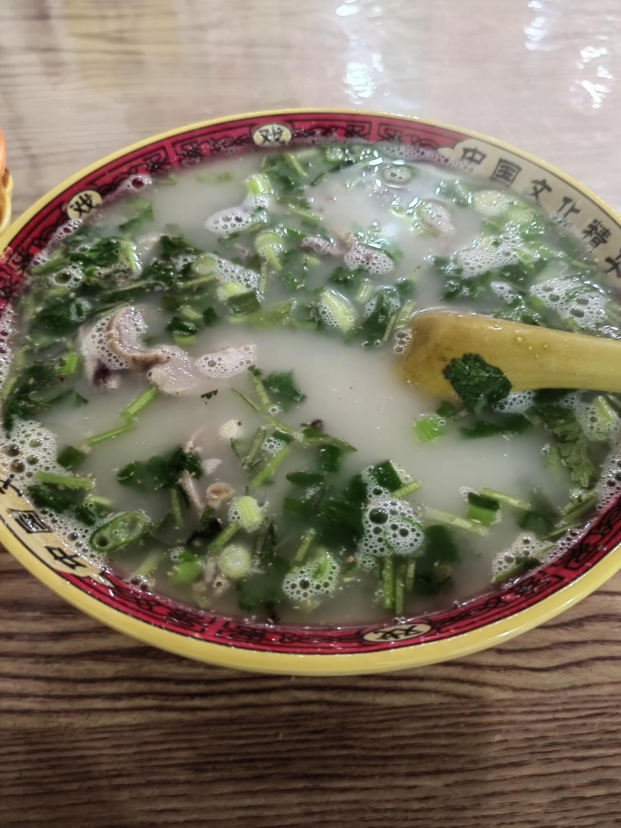 早晨三件套在北京真享受,吃完这碗汤施工员小孟说给个女人也不换,因为还是这碗汤更能抵御严寒。 北京的羊肉汤真可以,分类明确:羊杂汤、羊头汤、羊肠汤、羊肉汤,烧饼也有五六种了,外酥内嫩真是嘎嘣脆,偶尔出来嚯嚯一顿比项目茶叶蛋加小米粥来的更有味道。 在北京还有哪些地道的早餐给分享下?