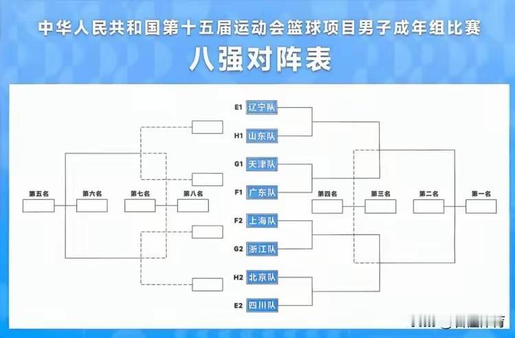 全运会八强抽签分组出来了,广东全运男篮或将连战两大老对手,别的不说,看点绝对拉满! 具体的抽签结果为:广东VS天津、辽宁VS山东,这两组为上半区。 四川VS北京、上海VS浙江,这两组为下半区。 从对阵情况来看,广东队若是能够顺利晋级,半决赛和决赛的潜在对手,大概率会是老对手辽宁队和四川队。 面对这两个对手,无论是场上,球员、教练员之间的交锋,还是场下,球迷、外界舆论的声音,看点绝对不会少。 广东球迷应该也会很乐意看到这样的对阵,如果能够踩着辽宁队晋级,然后战胜四川队,那这个全运会冠军含金量,自然不用多说。
