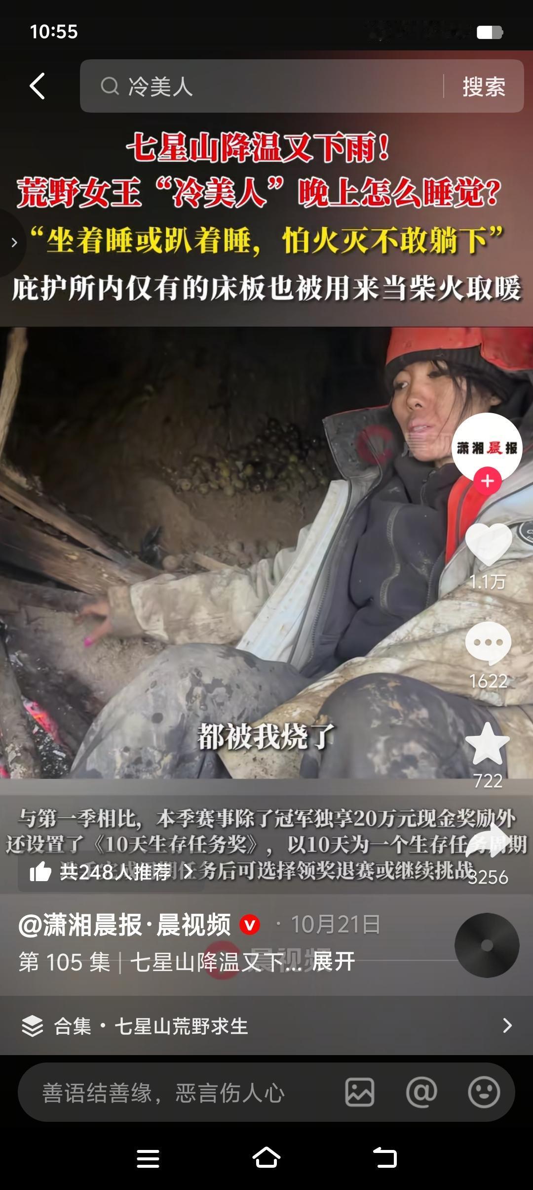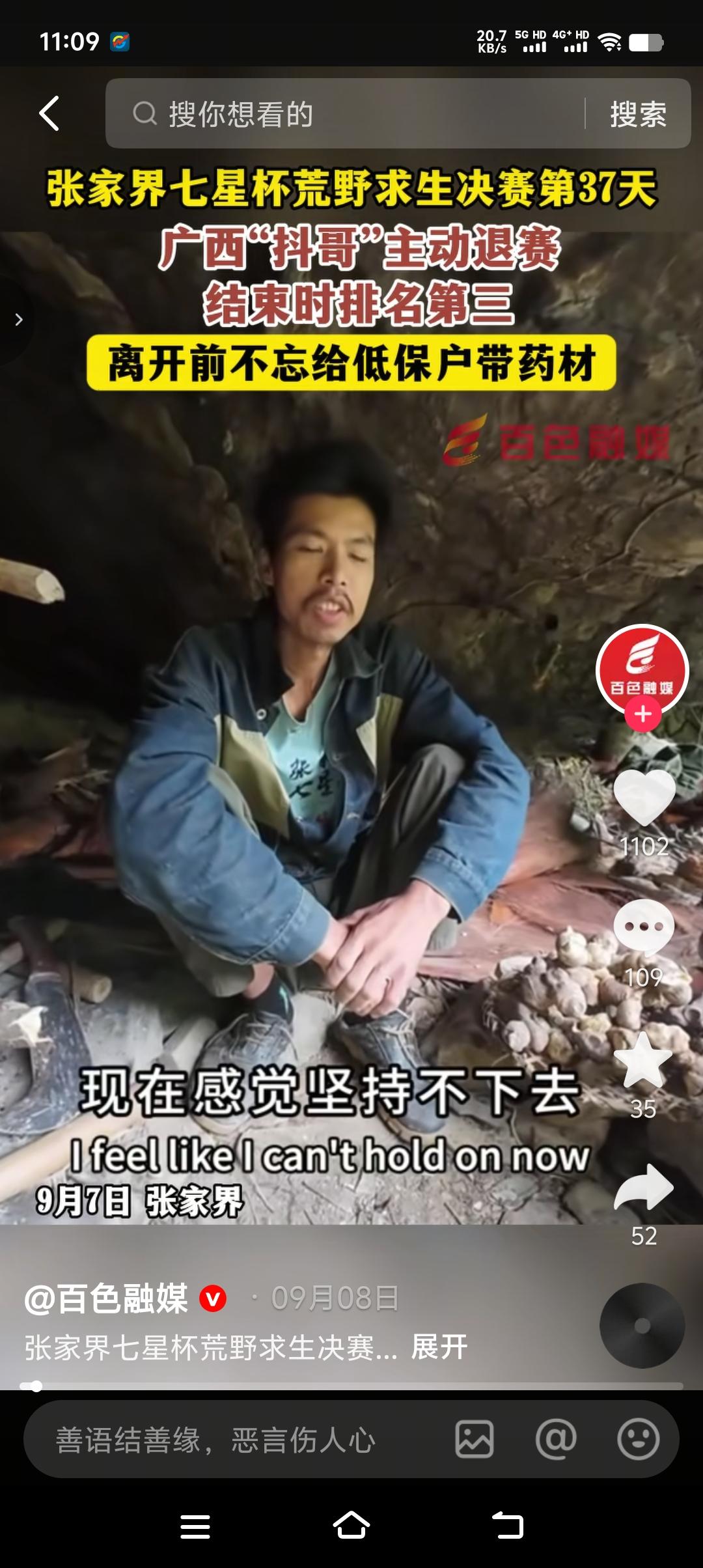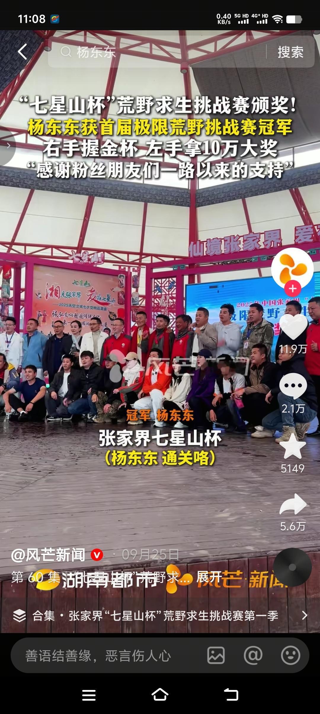国外荒野求生,国内荒野求金。国外用自己所掌握的技能和知识挑战大自然,苦中作乐,国内用自己的意念挑战自己的身体极限,苦中没乐。 100名参赛选手,持续60天,淘汰至10人晋级决赛。决赛无时间上限,坚持到最后一位即为胜利者。决赛阶段坚持30天及以上选手,奖金6666元,也就是说相当于你挣了一个月的工资。 第一庙张家界七星山杯荒野求生冠军来自湖南90后杨东东,历经69夜70天的野外生存,最终勇挫九名选手,喜提10万奖金和奖牌。 70天挣10万,绝不是一般人能做到的,因为70天熬的不是你的身体,更是你的意志。