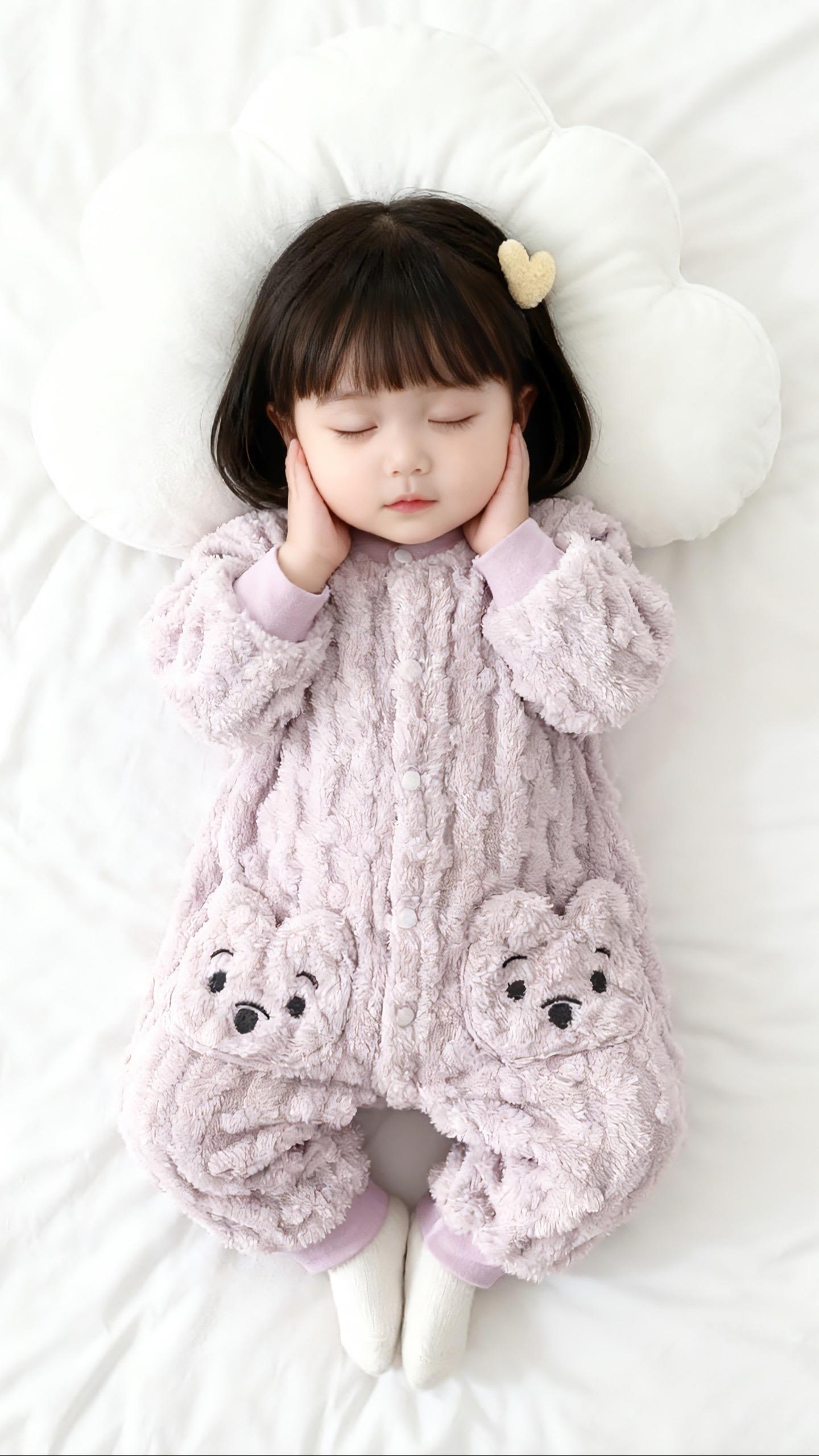 宝宝睡觉 也太可爱了吧 这个冬天不怕冷 法兰绒睡衣 幼崽