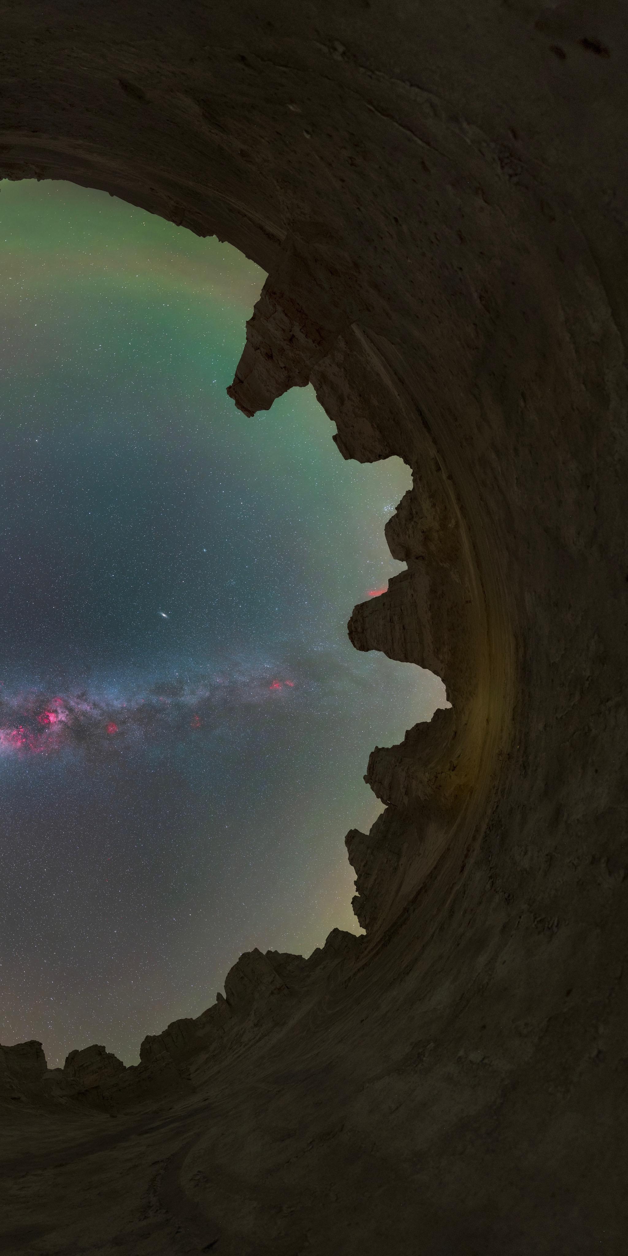 在荒凉的火星地貌看看我拍到的银河全景。