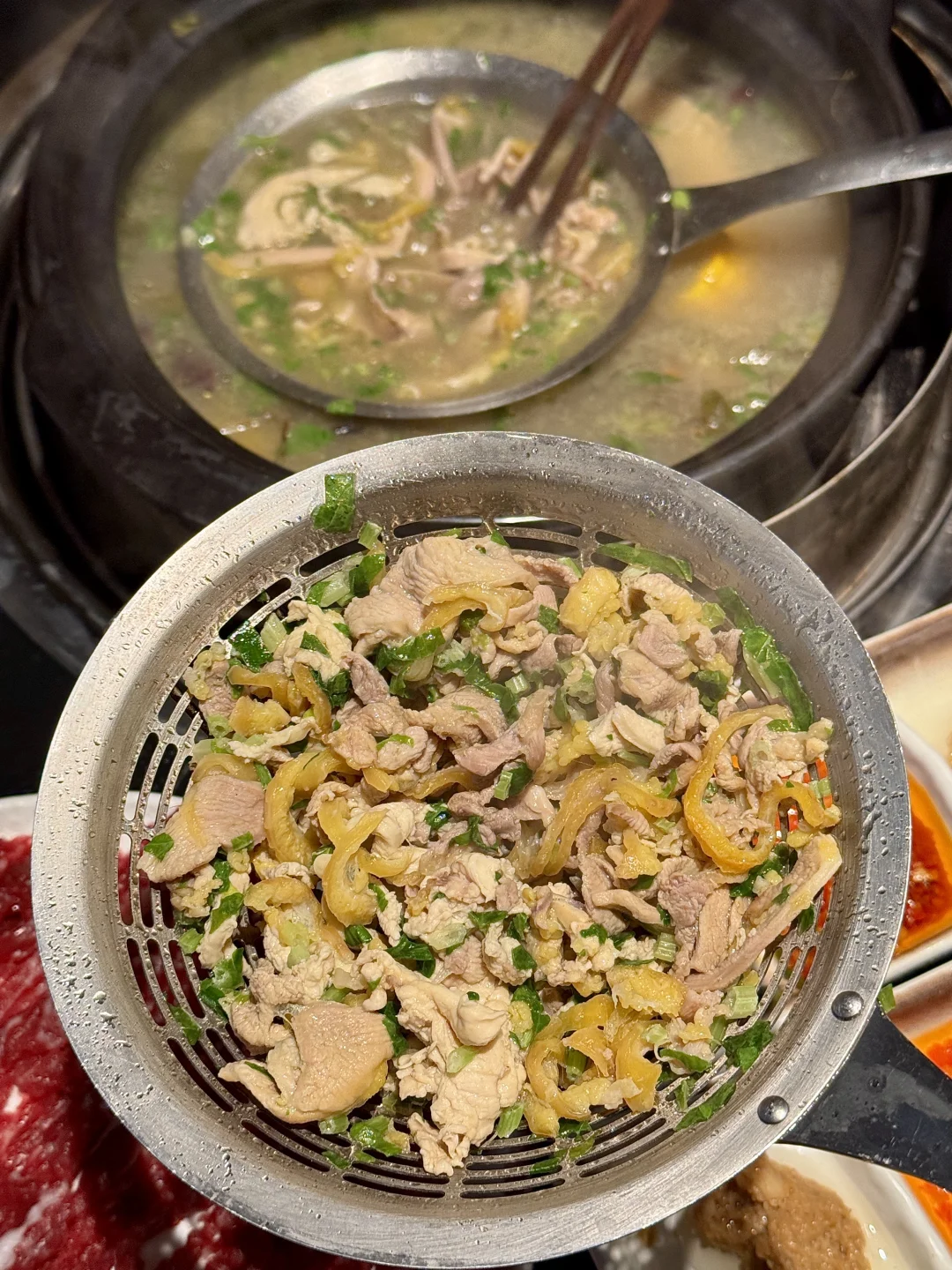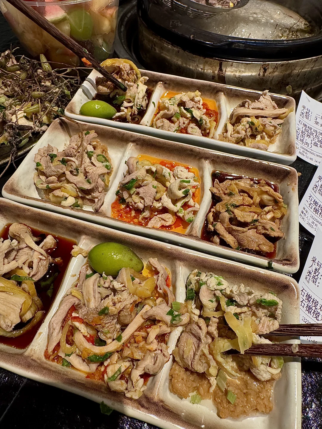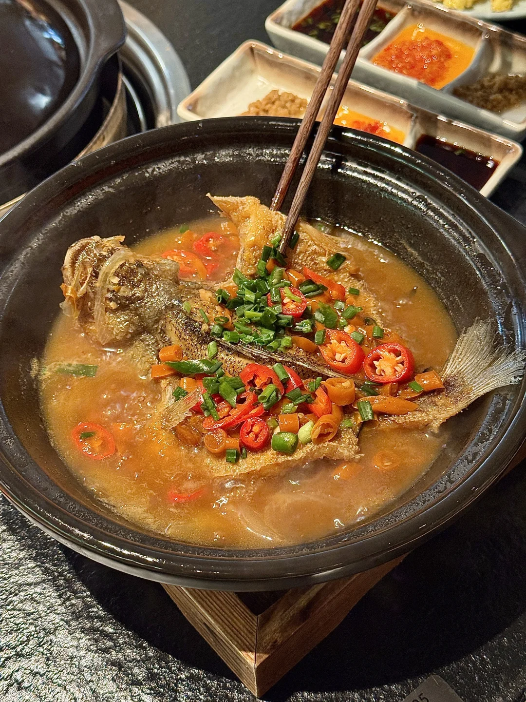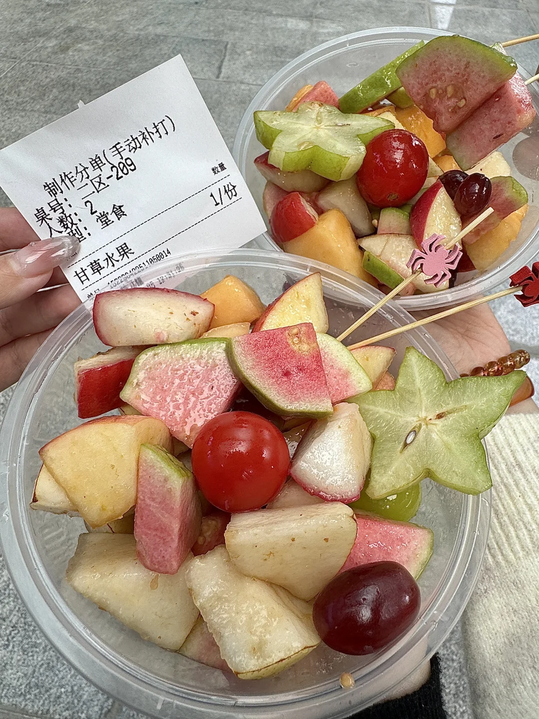 天知道这一口梅汁水果的含金量啊。。 一大份只要18r!杨桃、芭乐、哈密瓜、圣女果。。 清清爽爽的,酸甜开胃🤤这个物价堪比潮汕了! 一定要试试石橄榄鸡煲🫒明档现切的鸡肉,涮个几秒就能开吃,蘸上特制蘸料,鸡肉鲜嫩好吃亖了