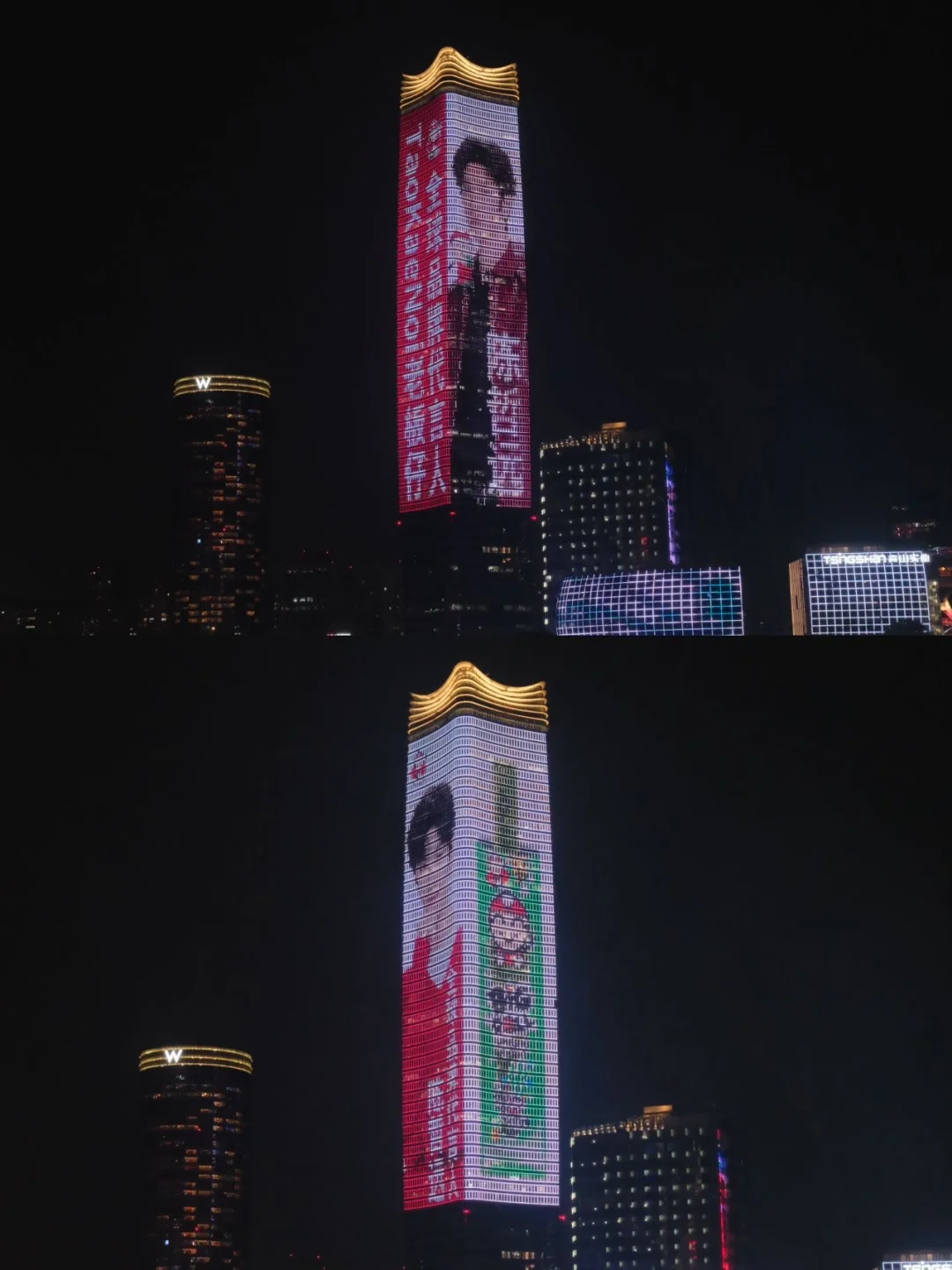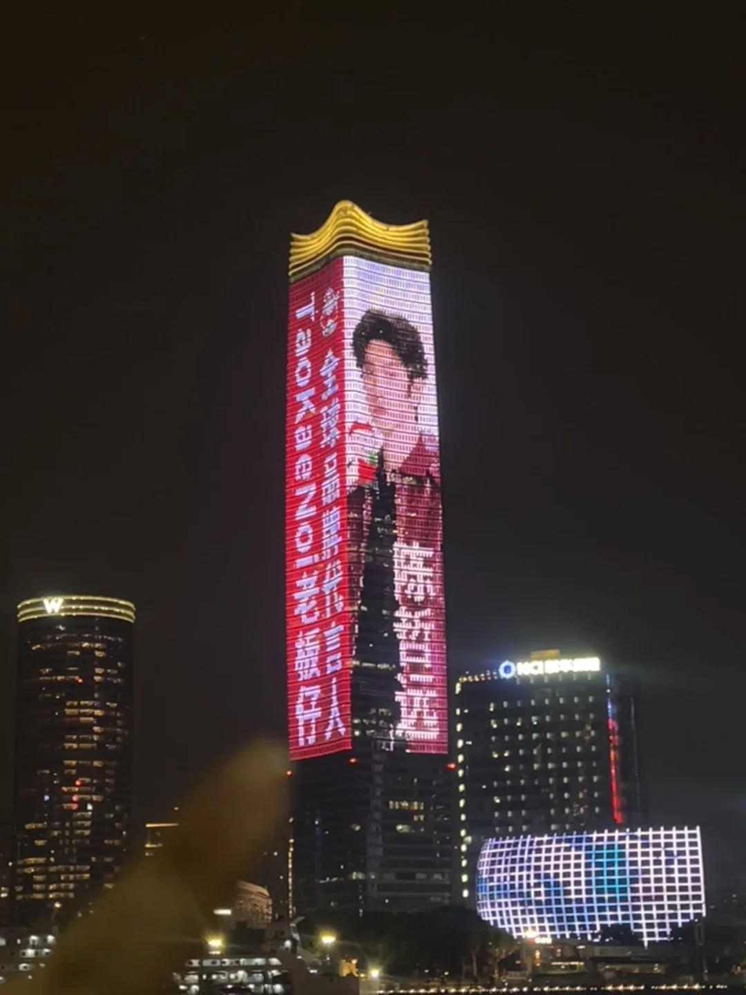 哇!今天在白玉兰广场偶遇了陈哲远的大屏应援!🌃 夜色中的大屏真的...