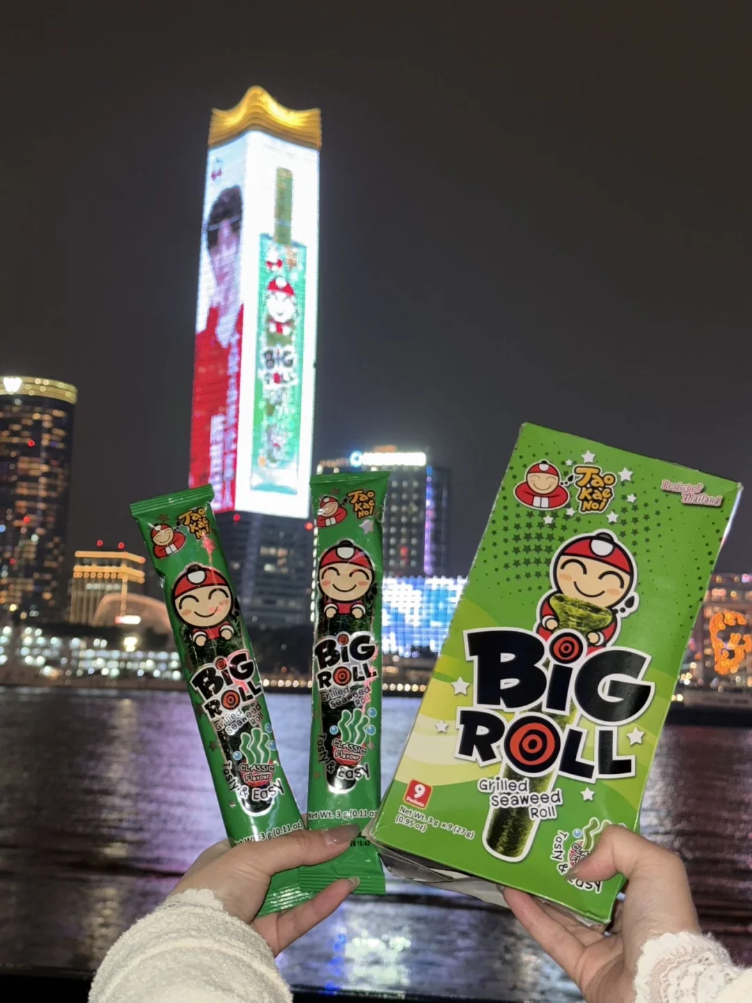哇!今天在白玉兰广场偶遇了陈哲远的大屏应援!🌃 夜色中的大屏真的绝美 海苔小王子突然变身全球代言人 双厨狂喜谁懂啊!! 站在屏幕前拍照的时候超级激动 必须来几张互动式合影📸 感觉手里的老板仔海苔都更香了~ 现在喜欢了很久的陈哲远代言他家,不敢想象一边看《一笑随歌》一边吃海苔会有多幸福🥰 元宝们快冲!! 线上🐱超能买到 线下超市也铺货满满 我已经囤了两大箱啦~