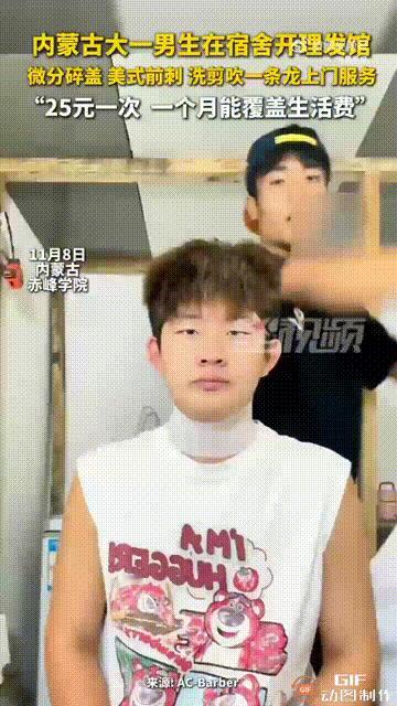现在的大学生真是太有头脑了!内蒙古赤峰一个正在上大一的学生,他在高中时通过网络直播,学习了理发技术,因此到了大学之后,他就想利用这门技术来挣生活费,于是在宿舍为同学们理发,一个人收费25元,比学校外面便宜,还附赠做造型,并且可以上门服务,由于他的技术不错,因此也是客源不断,每个月都能挣到一千多元,基本可以抵消自己的生活费了,网友看完这段视频,都觉得这个大学生真是太聪明了,他是一个很有想法的人,在高中的时候,就已经利用空余时间学习了理发技术,而上了大学之后,这门技术更是直接派上了用场,在宿舍给同学们理发,价格合理,服务周到,所以才会广受好评,这样不仅可以帮同学们解决问题,还能挣到自己一个月的生活费,实在是一举两得啊,不得不说,老一辈的人常说“学一门手艺好过活”,果然是有道理的。大家怎么看呢?
