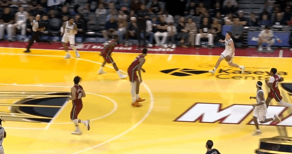 图2和西恩詹姆斯的“Pistol-Miami”战术配合,拿到本场第一记助攻。