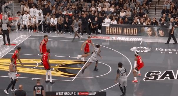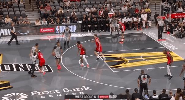 图5意识到尚帕尼要给快下的巴恩斯上球后立即加速上前,成功将球破坏。