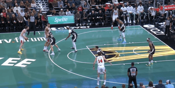 图5上提衔接与武器的“Flip”配合,特纳弱延误,吉迪阅读到弱侧的安东尼伺机协防后,立即传给弱侧的赫尔特。