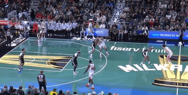 图3持球策动挡拆,吸引特纳延误后回给外拆的武器。