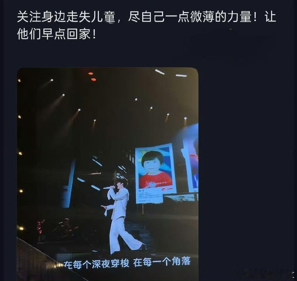 王赫野演唱会上放了寻亲启事 被王赫野的温柔狠狠戳中!演唱会大屏+伴手礼双管齐下放走失儿童寻亲启事,唱《1985》时的舞台设计让歌词有了新意义,喜欢本来就很好的人真的太值了~