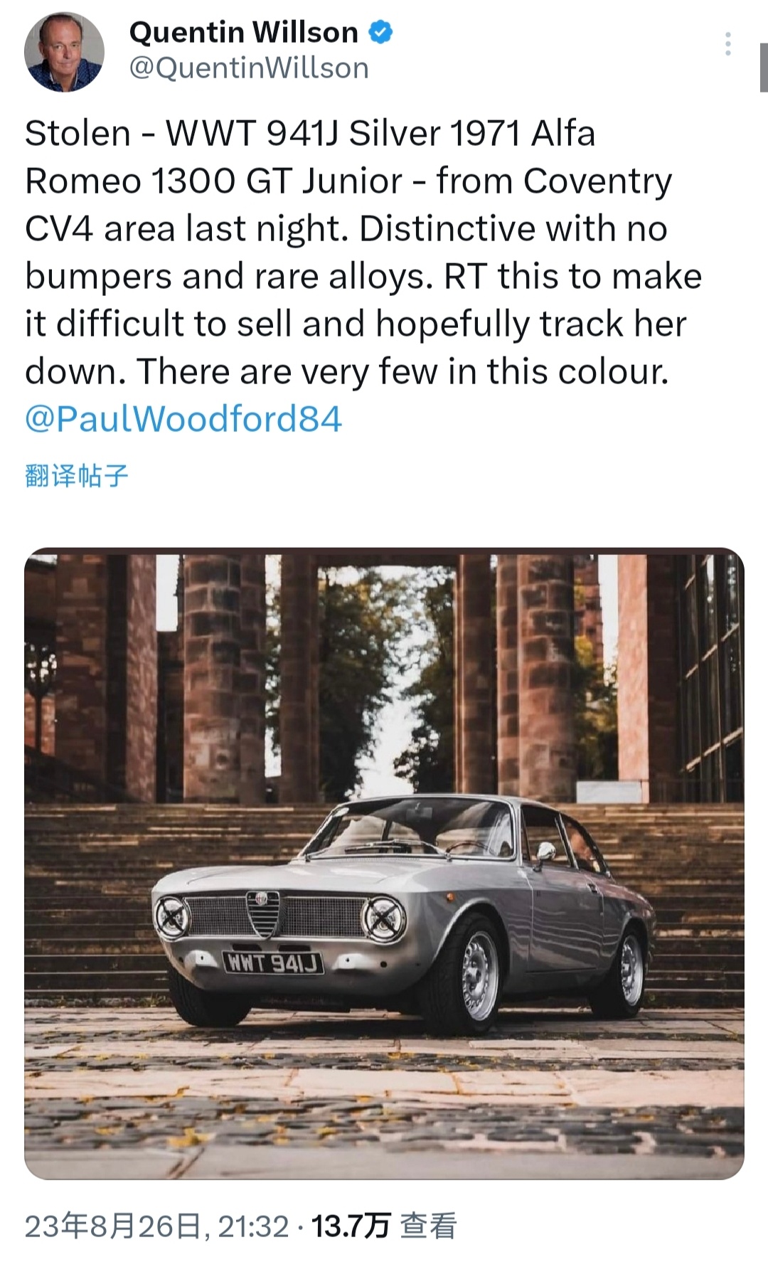 Quentin Willson昆汀·威尔逊去世了,享年68岁。