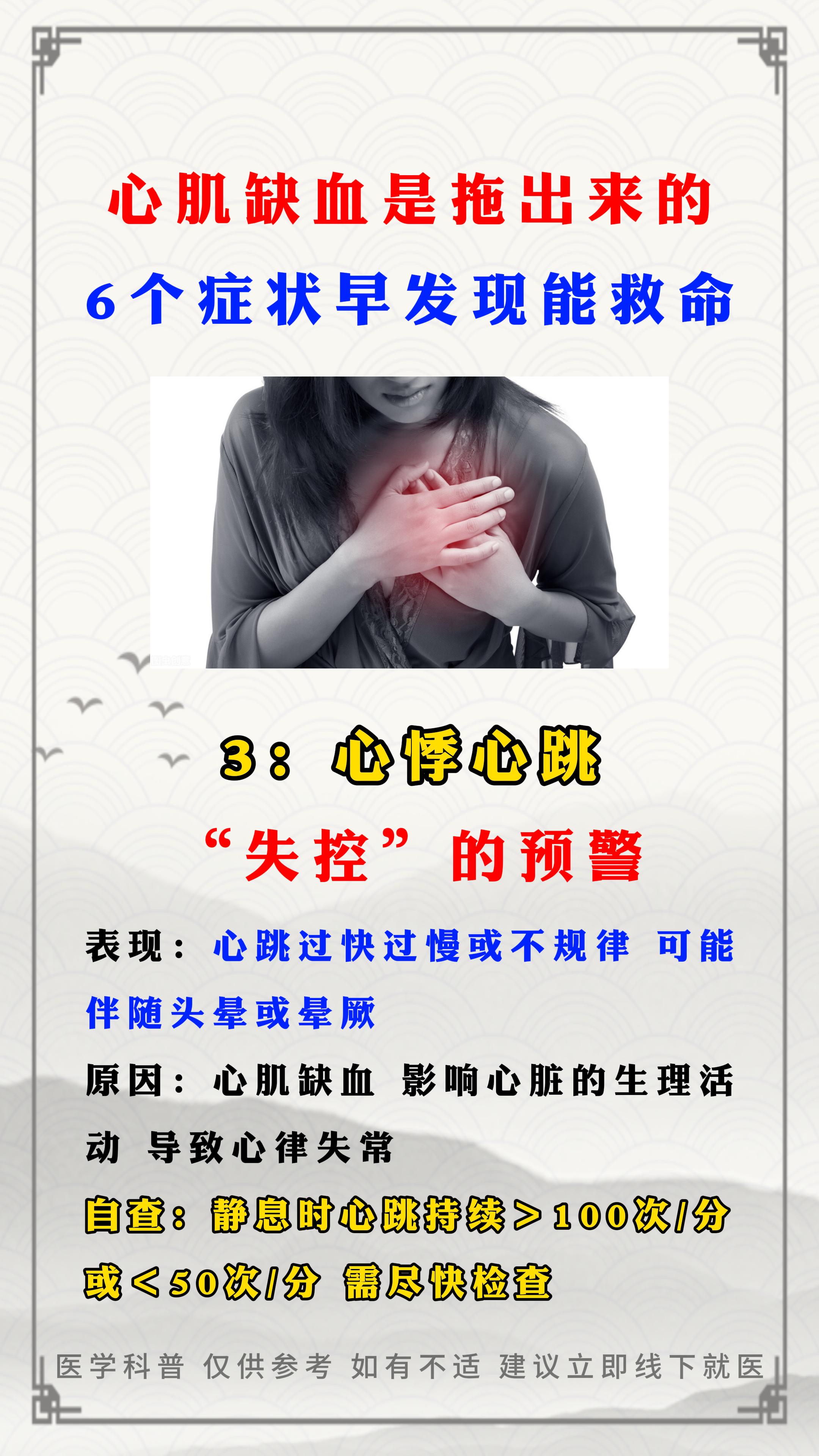 心肌缺血是拖出来的,6个症状早发现能救命。