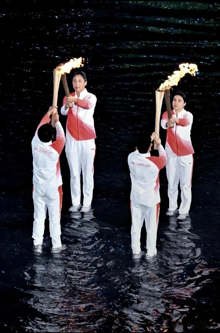 为什么全运会火炬传递要在水里行走?有什么寓意吗?火炬手第一棒:马琳、陈若琳,第二棒:黄金宝、方文浩,第三棒:郭晶晶、王欣瑜。