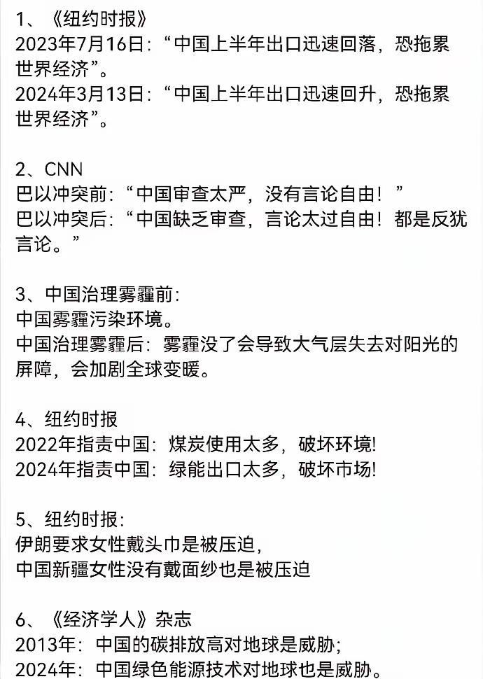 西方的话术真是简单粗暴 西方的双标举世闻名,不在于他们是否依据事实报道新闻事件和发表评论,而在于他们一直利用其在全世界舆论场的强势地位简单粗暴的对全世界洗脑,暗植某类印象,从而引导世人的思维和行为。 他们的言论完全谈不上公正严明,更不会基于事实,他们只服务于大资本的利益和立场,其余一切都必须让道和牺牲。 对于中国的抹黑他们竭尽全力,不同的时期,他们会根据他们的需要在全世界塑造中国的形象。 其目的就是要抹黑中国,消除中国的正面形象和能量,增加中国与世界其他国家和组织合作的阻力,想要通过软硬实力结合的方式将中国和世界尽可能隔离。 当然我们不会坐以待毙。 这些年我们在外交层面投入了尽可能多的资源,也会尽可能利用各种机会向世界展示我们的发展成就和相处方式,从而让世界更好的认识我们并乐意与我们共处。 我觉得我们国家提出的“命运共同体”十分关键和必要,因为我们同在一个地球,必须协同发展,也应该尽可能共享发展成果。 美国外交双标 美西方双标