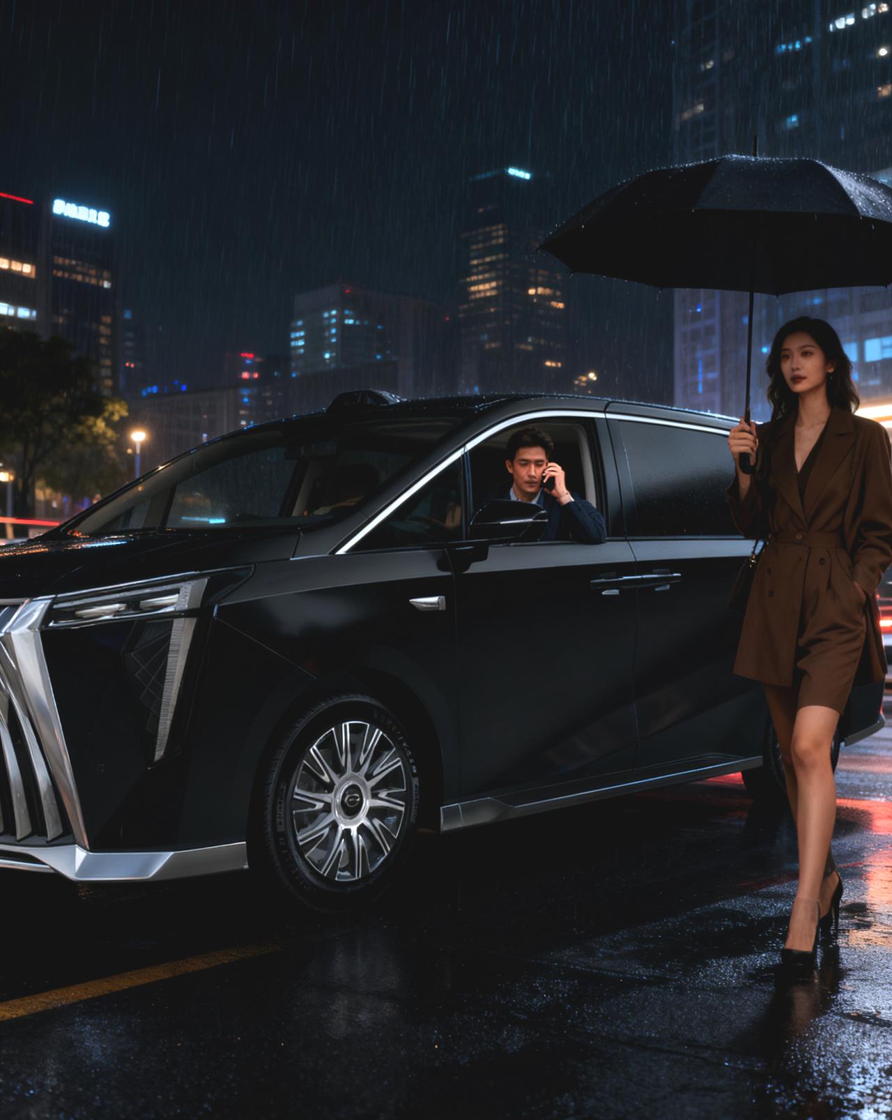 秋风习习的雨夜街头,他的传祺向往M8宗师急刹在她伞边,醒狮前脸的竖威格栅溅起细碎水花。“上车避雨?”他话音刚落,电动侧滑门已无声滑开,深海蓝与活力橙的双拼内饰衬着星空顶,瞬间裹住她的狼狈。 她指尖触到二排水晶航椅的细腻皮质,语音刚说“有点冷”,座椅加热便轻柔启动。他借着ADIGO智能座舱的氛围灯偷望,她正对着蝴蝶顶灯浅笑。 后来这台车成了他们的秘密基地:语音控制调平座椅看星空,后备箱装满露营装备赴远方,40.8分贝的静谧空间里,藏着无数句“我愿意”。 原来最浪漫的向往,是与你共乘一车,把岁岁年年都坐成头等舱。