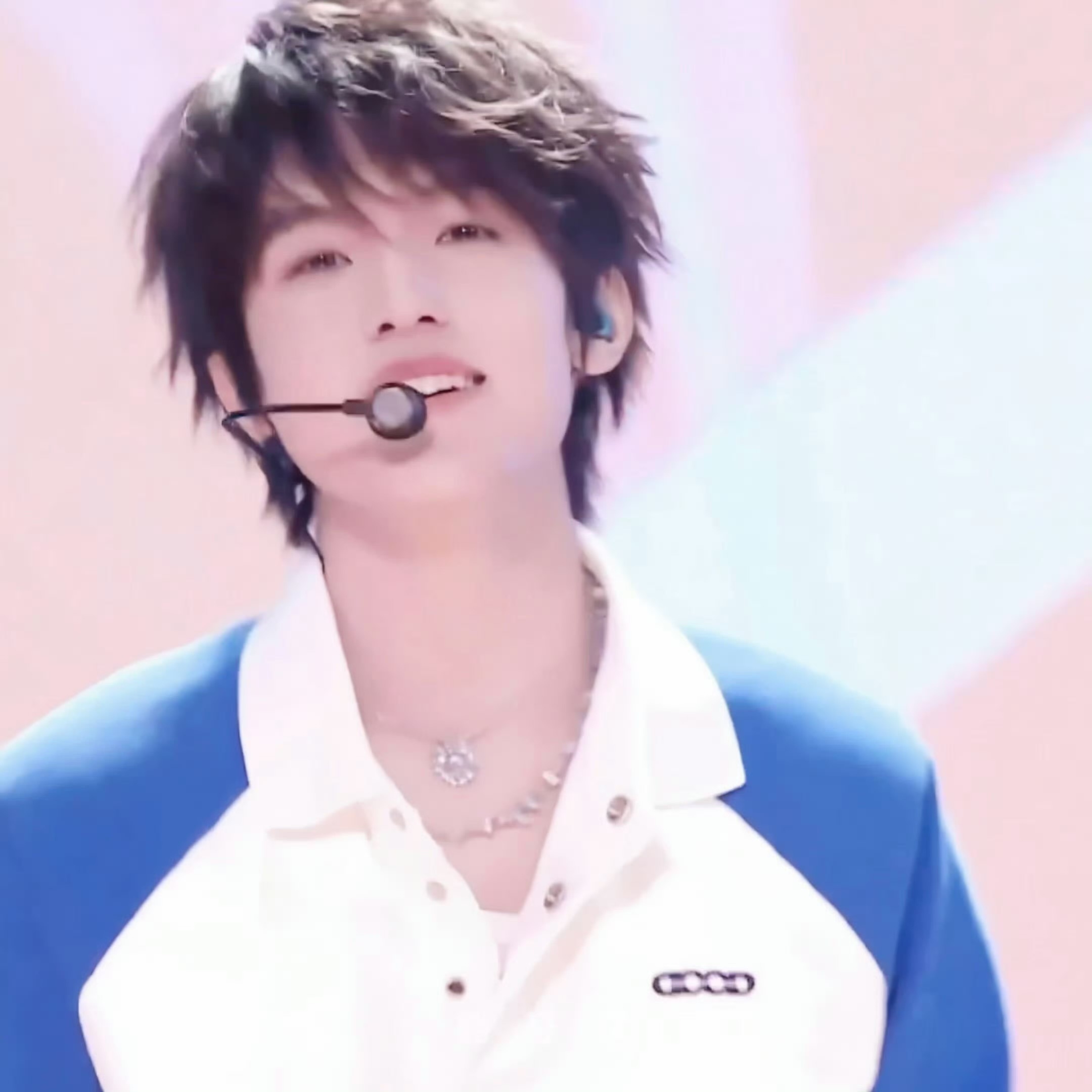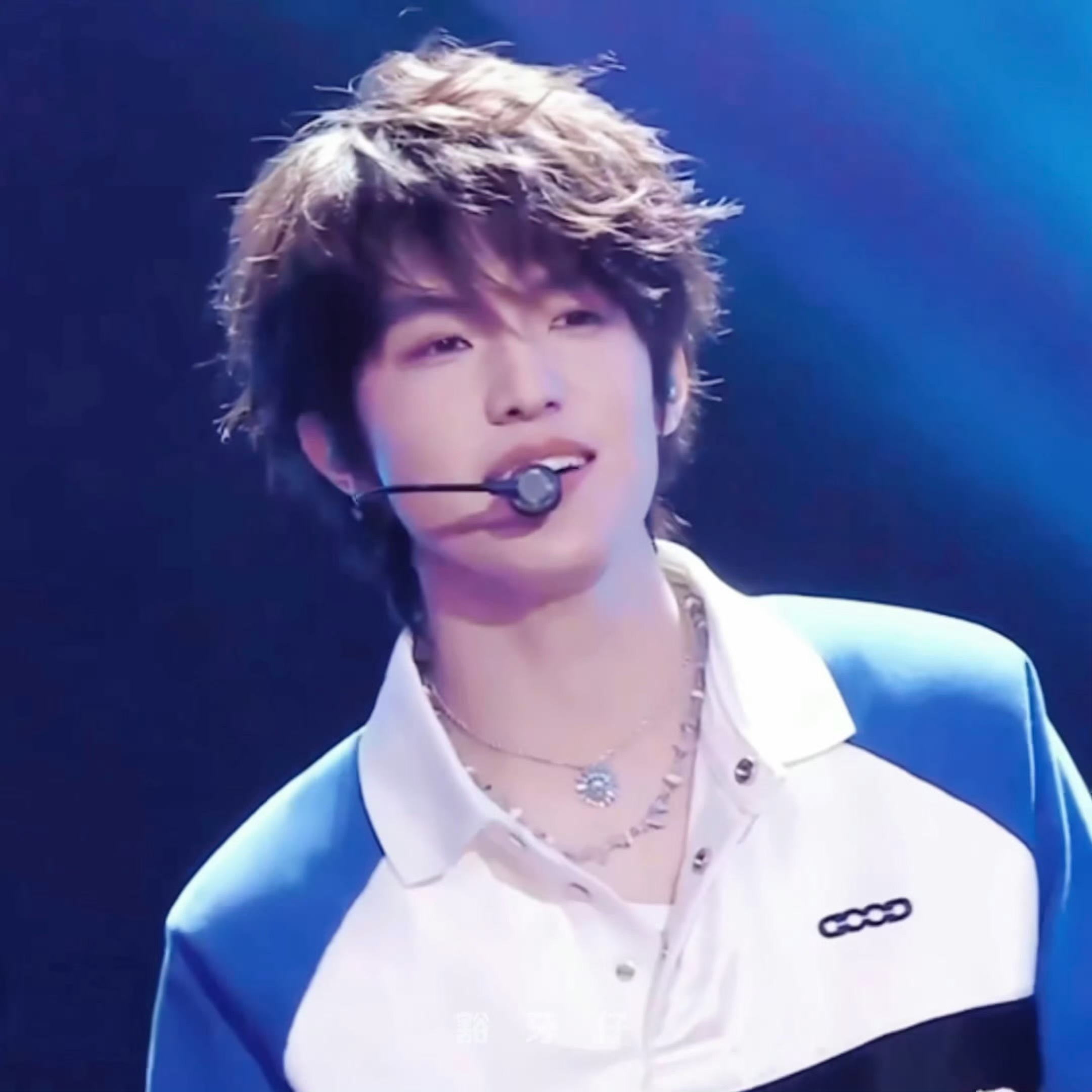 张泽禹舞台大屏冲击力张泽禹玉桂狗配色打歌造型 蓝白造型自带活力buff!玉桂狗同款甜度,大屏怼脸暴击,韩团打歌氛围感拉满~