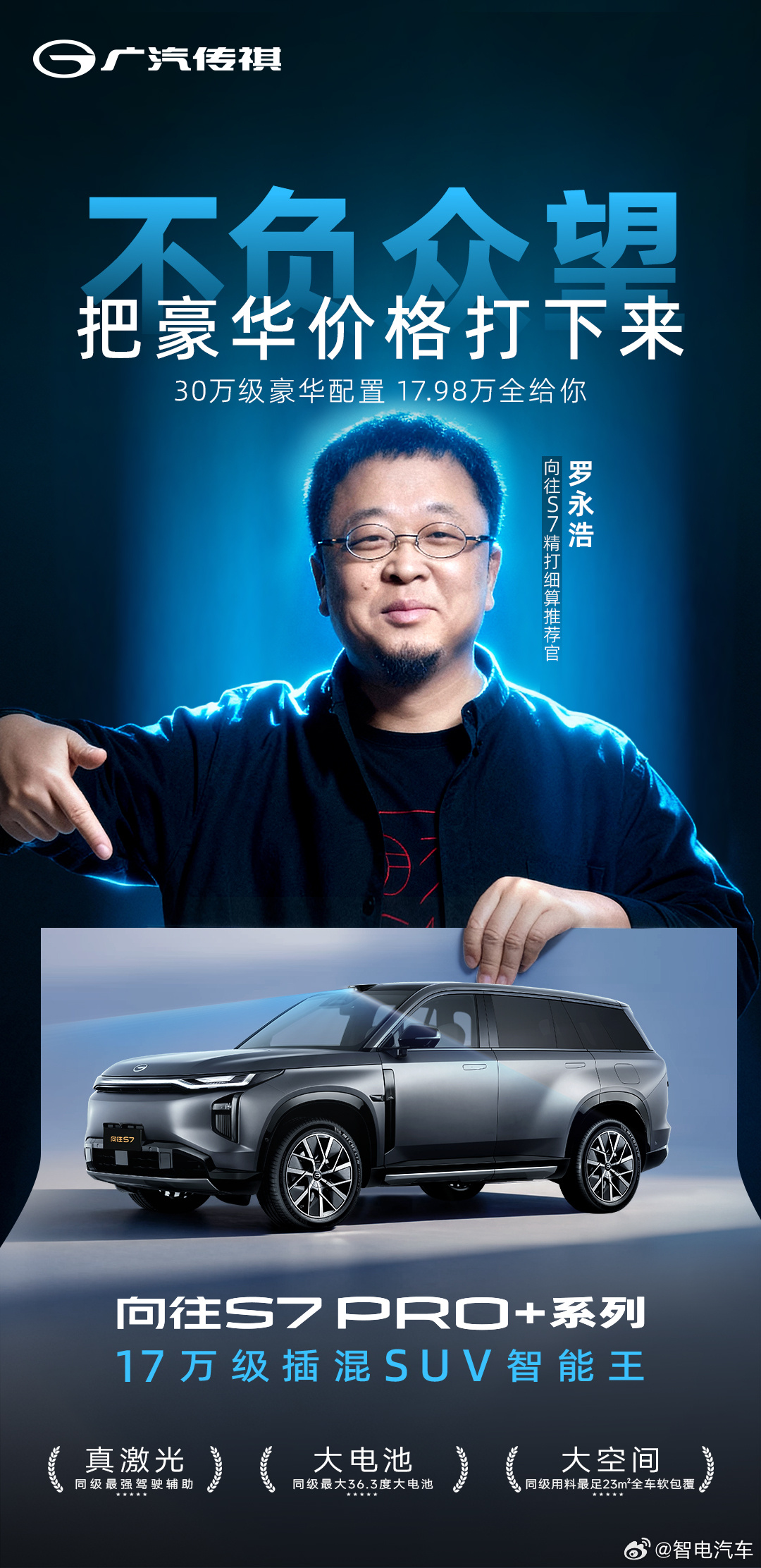 传祺向往S717万级插混SUV智能王罗永浩年度大片上映