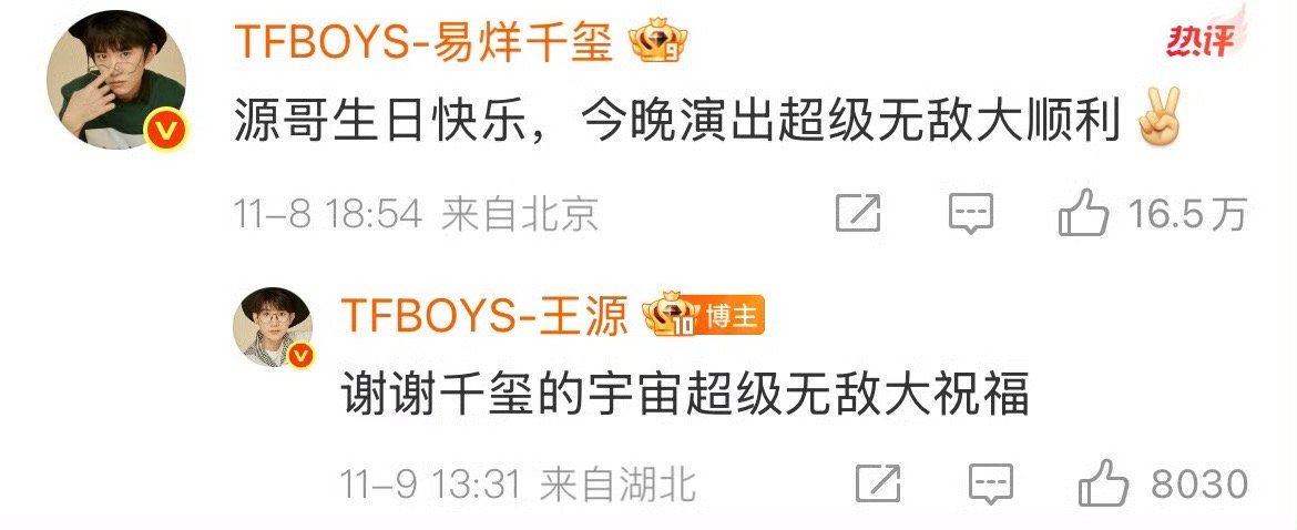 王源评论区回复王俊凯易烊千玺祝福王源回复了王俊凯和易烊千玺的祝福!