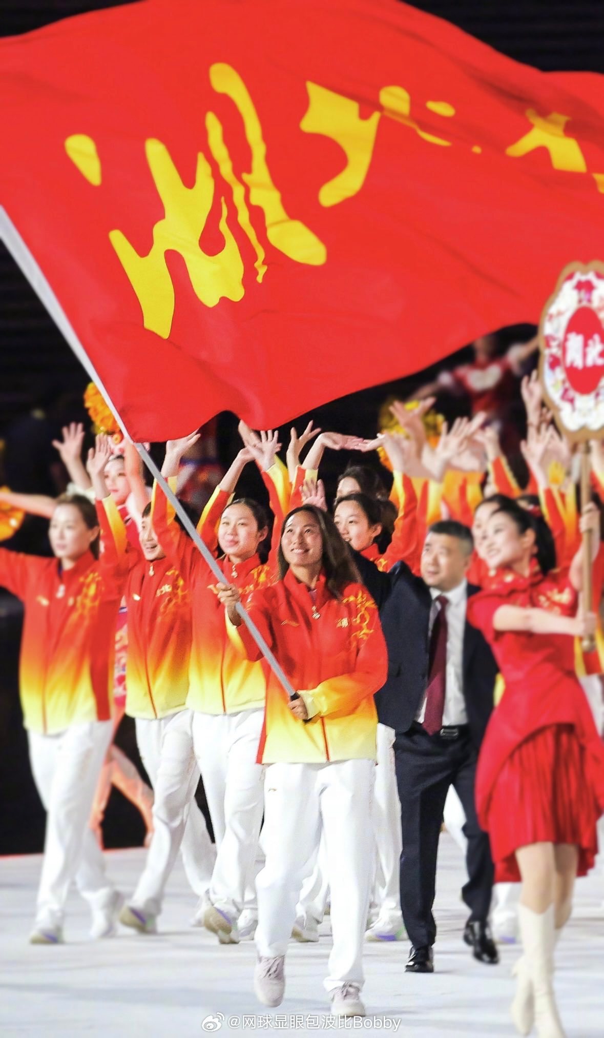 郑钦文担任湖北代表团旗手郑钦文亮相全运会开幕式全民聊全运网球显眼包波比Bobby[超话]