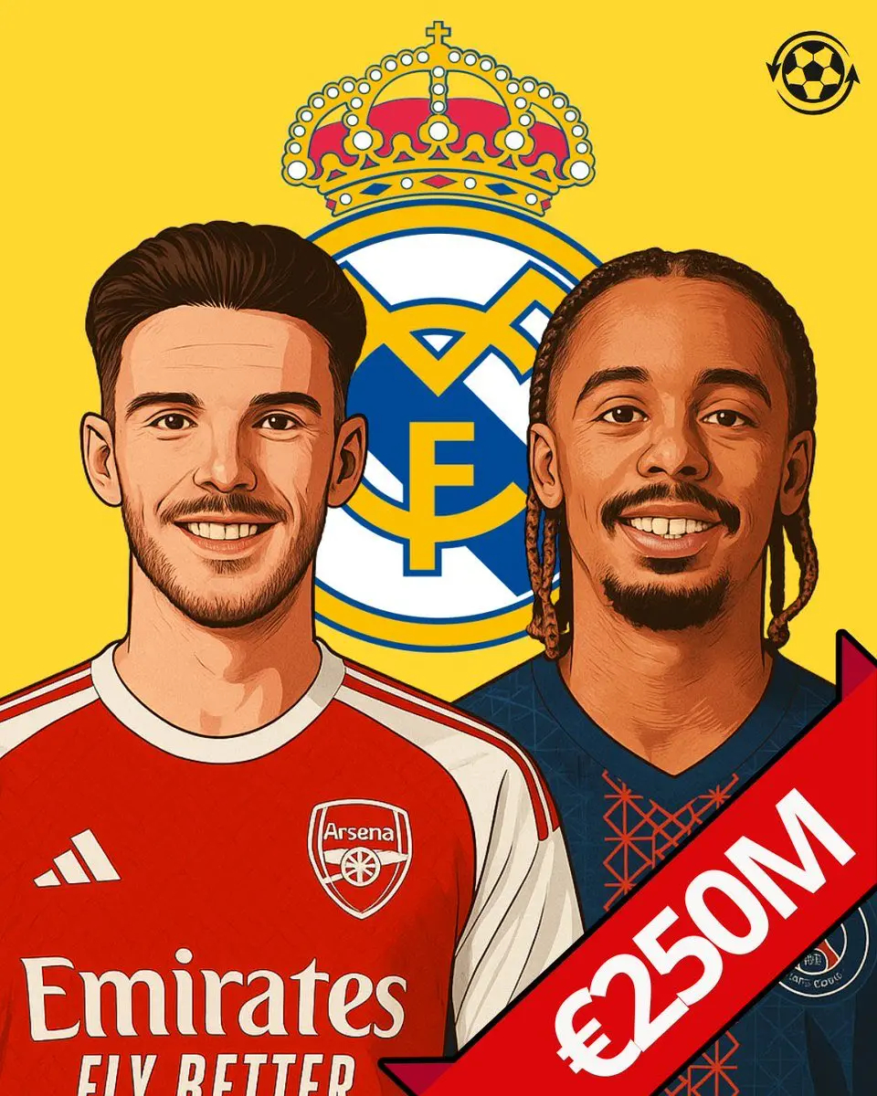 皇家马德里准备在2026年夏天花费€ 2.5亿欧元(约合2.2亿英镑)购买两名球员: