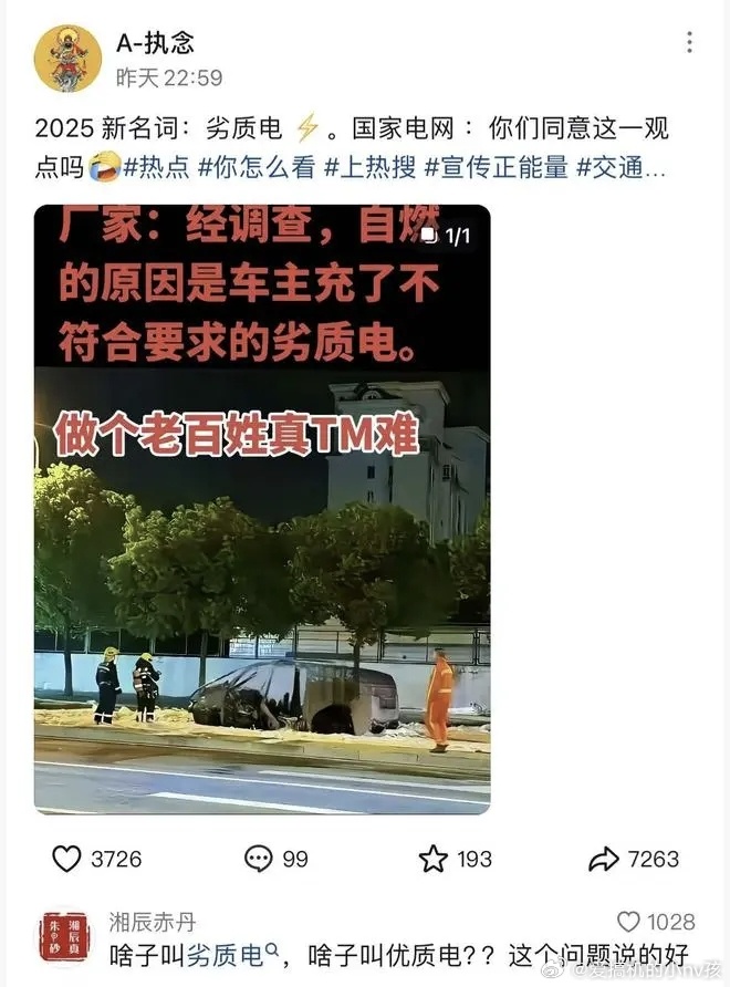 男子编造充劣质电致车辆自燃被抓就是前段时间理想自燃那事吧,当时刷到过“劣质电”这种说法,压根没当一回事[笑cry]太能编了…