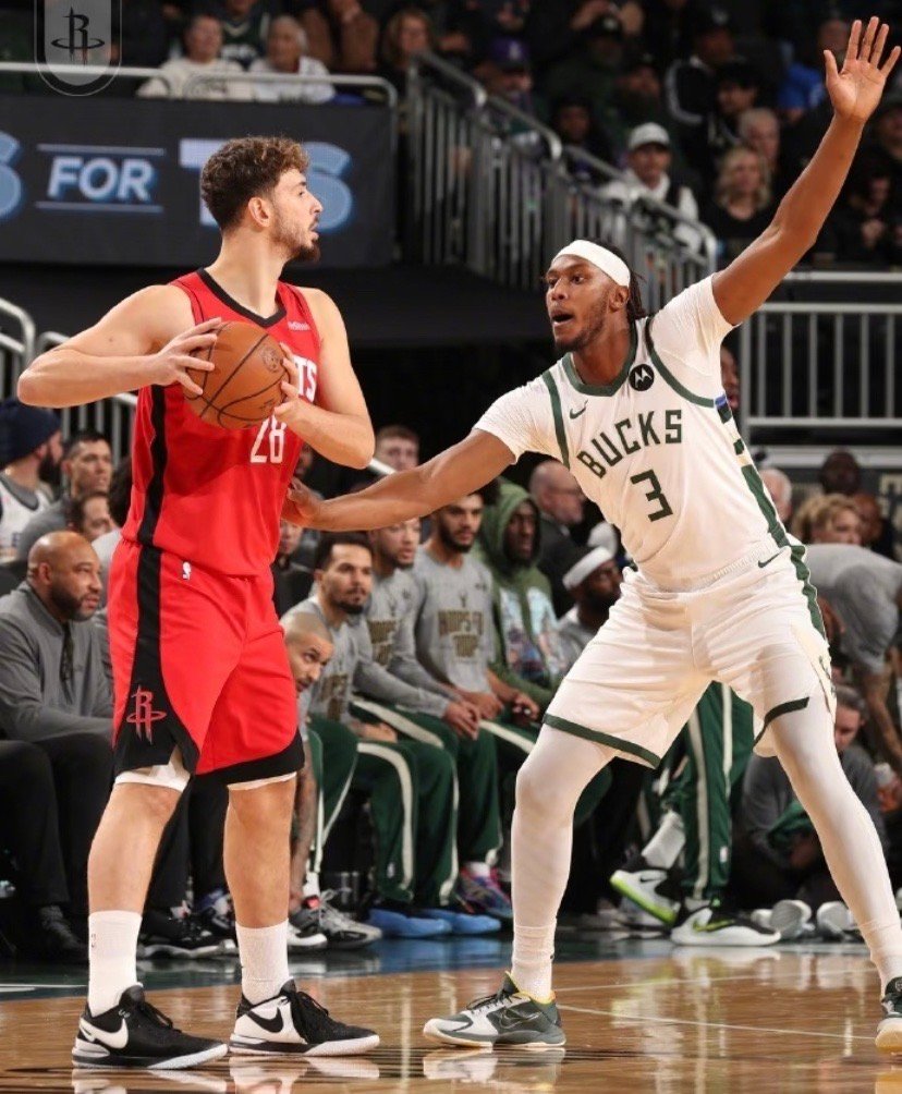 火箭队客场对阵雄鹿,火箭以122比115逆转取胜,战绩提升至6胜3负!