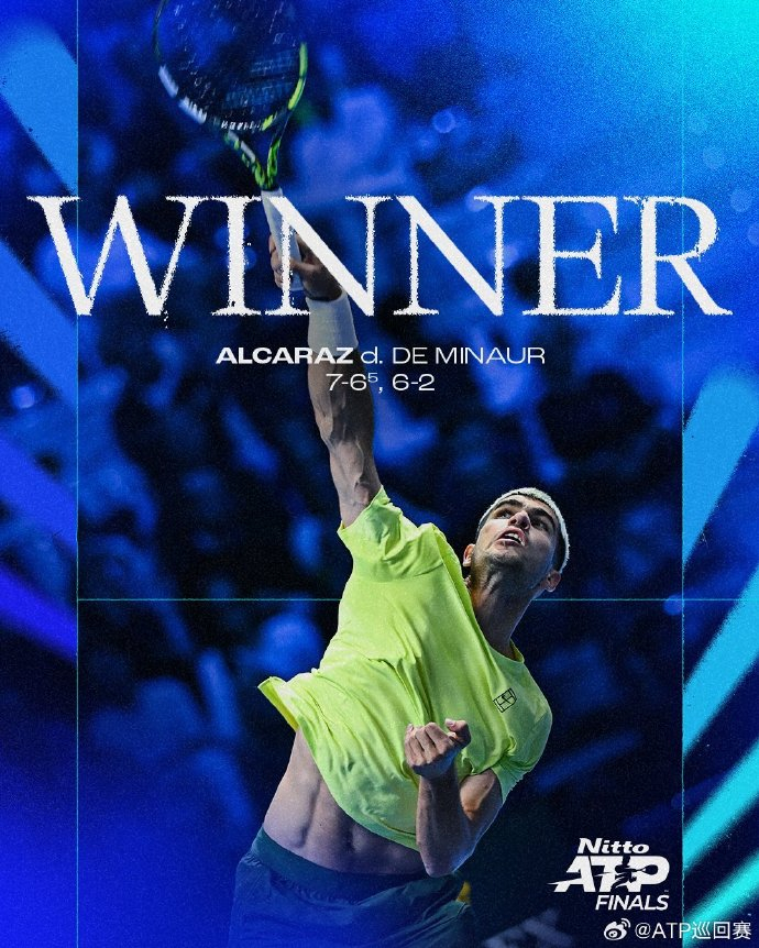 日东ATP总决赛吉米·康纳斯组首轮,阿尔卡拉斯7-6(5) 6-2击败德米纳尔。