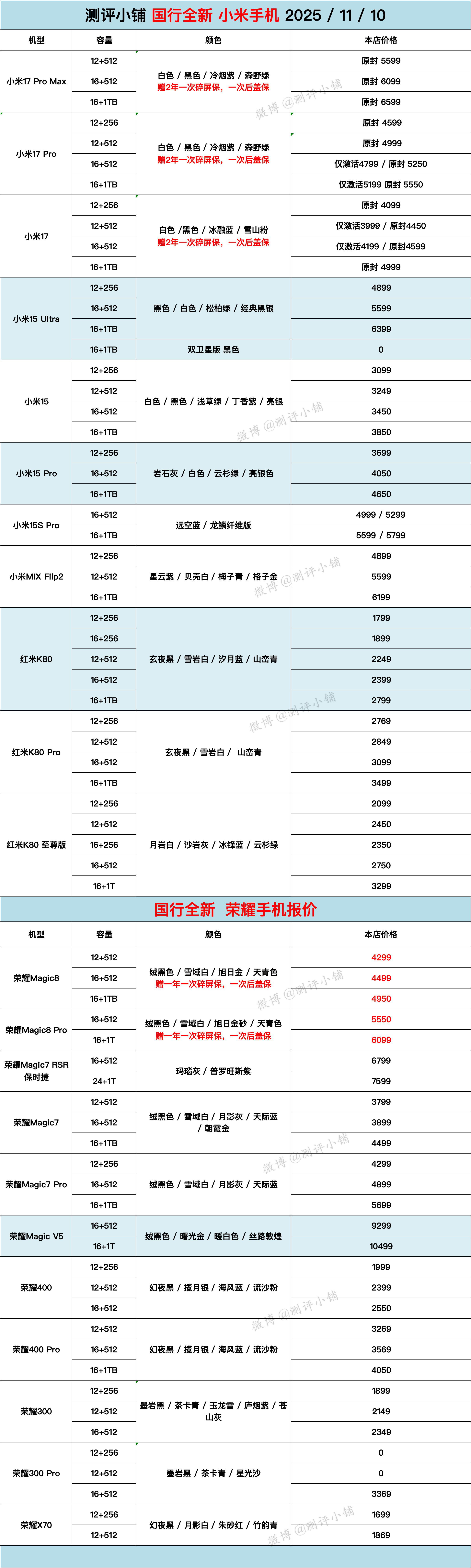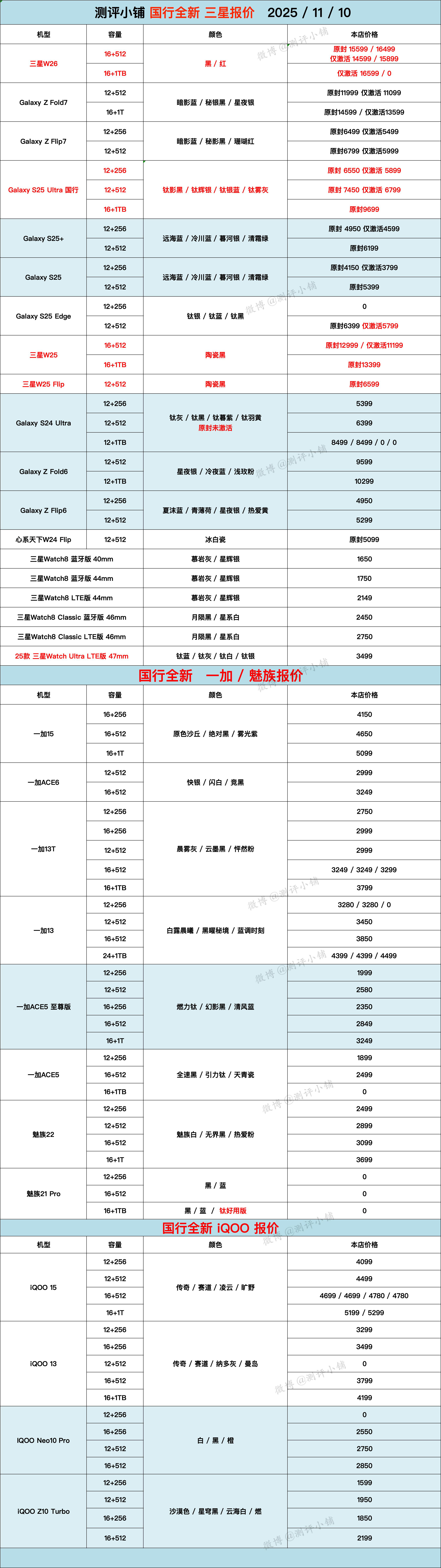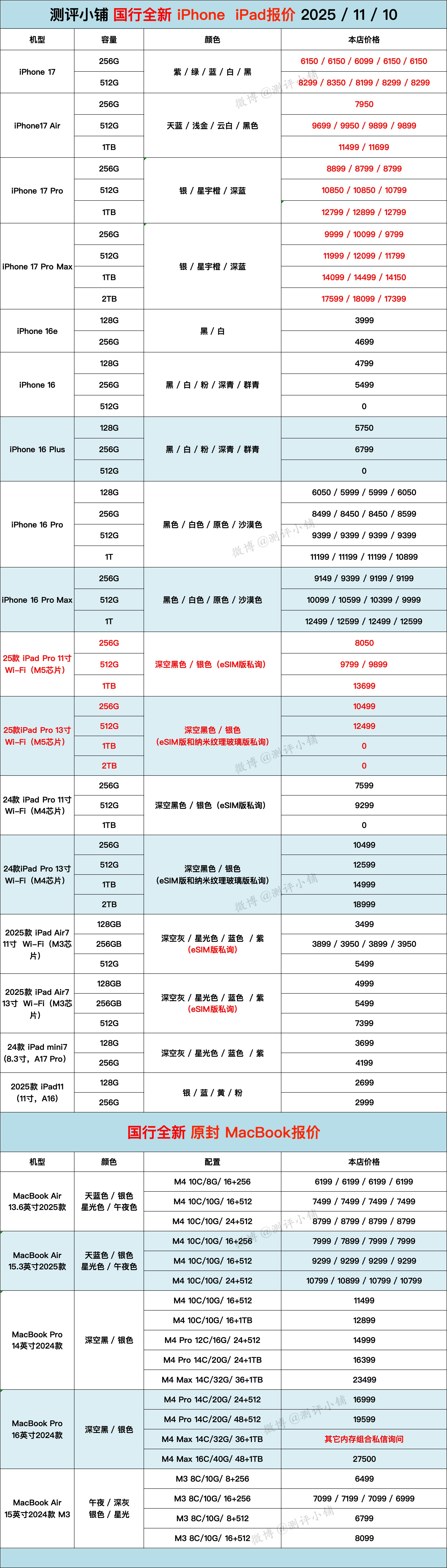 11-10国行全新机,iPhone系列,iPad系列,华为Mate XTs,OPPO Find X8 Ultra,iQOO15等更新