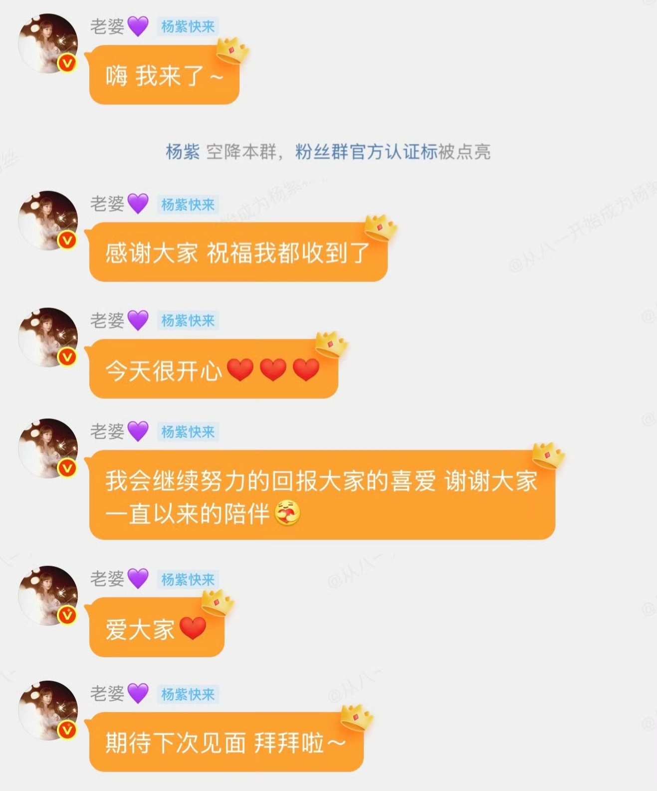 今晚寿星杨紫空降粉丝群 偶像与粉丝的双向奔赴是多么的美好感动[期待][期待]