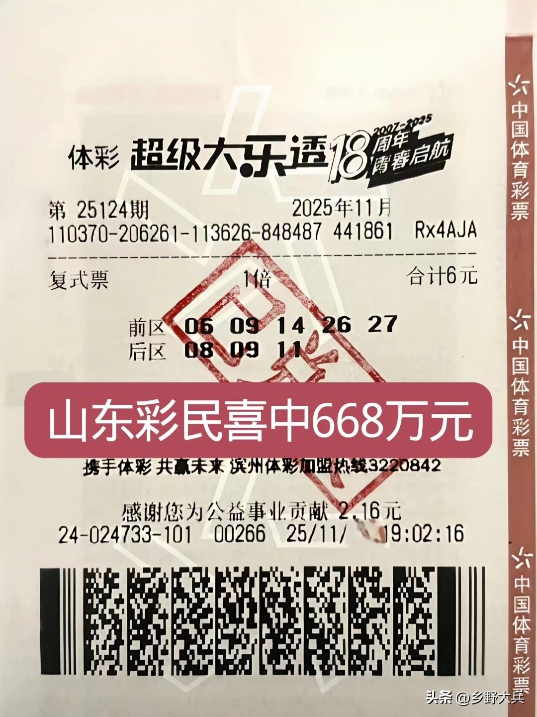 6元小复式体育彩票,喜中大奖668万元,一共中了一等奖一注加二等奖二注,总奖金668个W,真是太幸运了,被主任看中了,会不会是主任的亲戚朋友呀?小小6元就拿下大奖,领了奖金后这辈子可以躺平了,真是天降横财呀!