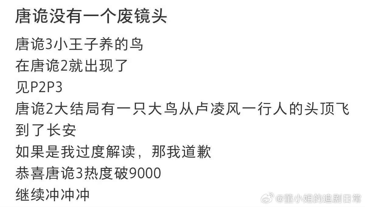 唐诡3没有一个废镜头 唐朝诡事录之长安唐诡真的做到了没有一个废镜头,每一帧都超细节,空镜全是伏笔,按帧放大也经得起细品,细节控真的狂喜了!