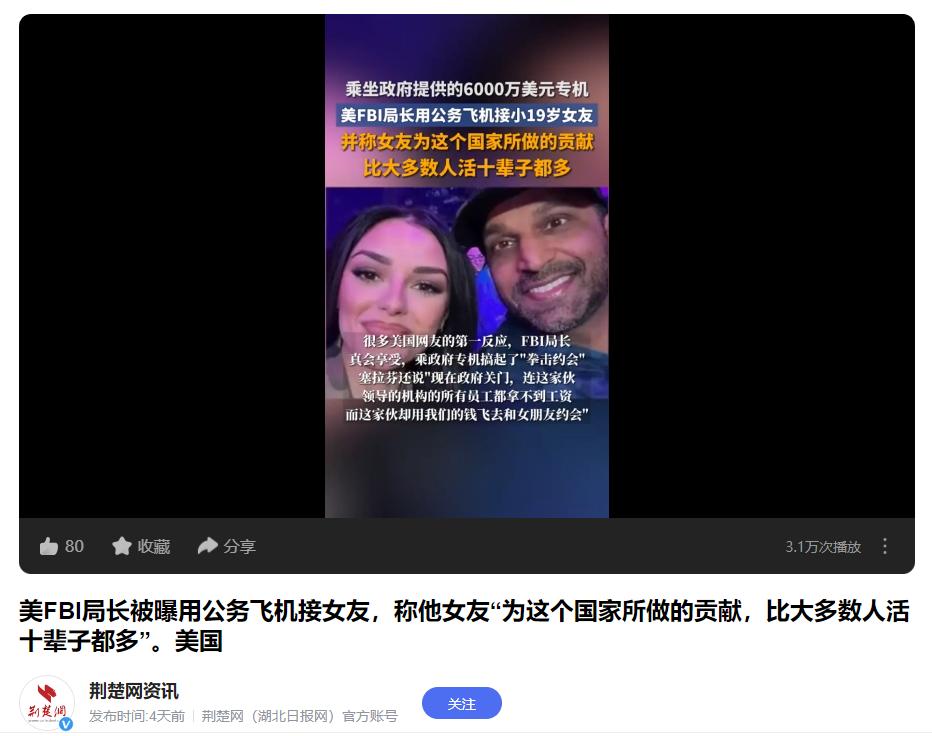 印度人终于还是霍霍到FBI了!美国新任印度裔FBI掌门人,动用6000万美刀公务机去跟小女友约会。 根据飞行记录显示,一架注册在司法部名下的豪华喷气式飞机,曾在10月25日从弗吉尼亚州马纳萨斯地方机场起飞,40分钟就降落在宾夕法尼亚州某机场,当天又辗转飞往田纳西州纳什维尔。 而就在同一天,现任FBI局长卡什·帕特尔就出现在宾夕法尼亚州立大学的摔跤比赛现场,和26岁的乡村歌手女友亲密合影,全程没有任何公开的公务活动记录。 要知道这种级别的公务机每小时运营成本就高达数万美元,往返这一趟的花费够普通美国人赚好几年,更别说6000万美元的购机成本摊到每次飞行上的折旧费用了。 讽刺的是,帕特尔面对质疑时还振振有词,说自己女友的贡献比他人十辈子都多,这论调让人不禁想起美国财长姆努钦的夫人林顿,当初她搭乘公务机炫富被骂后,也是嘴硬称自己家对国家税收贡献比网友大得多,最后还不是得乖乖道歉。 只不过帕特尔似乎没吸取教训,反而把公务机当成了私人爱巢专列,之前就有报道说他曾三次乘公务机往返女友居住地纳什维尔,就算偶尔访问当地FBI办事处,明眼人都能看出公私比例早已严重失衡。 要知道帕特尔当年批评前任局长克里斯托弗·雷“用纳税人的钱租私人飞机到处飞”时,那义正辞严的样子仿佛还在眼前,现在自己上任了却变本加厉,这种双重标准也是没谁了。 按照美国《联邦旅行条例》规定,公务机使用必须严格限定在公务目的,就算是帕特尔出于通讯安全考虑需要乘坐政府飞机,也不能如此明目张胆地公私不分。 司法部监察长办公室曾调查过六名FBI探员海外嫖娼贩毒的案件,其中四人在问询中撒谎,最终两人辞职、两人退休、一人被免职,可见FBI内部并非没有监管机制,但到了帕特尔这里却成了“灯下黑”。 有议员算了一笔账,如果按帕特尔这种使用频率,一年在公务机上的私人花费就得上百万美元,这些钱足够给基层探员添置几十套侦查设备,或者为受害者救助项目提供重要资金支持。 最让人匪夷所思的是帕特尔那套“贡献论”,且不说他的女友只是一个乡村歌手,能有多大社会贡献一眼便望到头了。就算其真有突出贡献,也不该用美国纳税人的钱来给他的私人出行买单。 事实上,美国政府监督机构“华盛顿公民责任与道德”早就盯上了这类公机私用的行为,之前姆努钦夫妇借公务机看日全食就被该机构要求公开审批文件和成本明细。 现在帕特尔不仅不收敛,反而敢公然挑战公众底线,不知道是觉得FBI的权力大到可以凌驾于规则之上,还是真把政府资源当成了自家后花园。 这种把公共权力异化为私人服务的做法,不仅寒了美国人的心,更让FBI的公信力蒙羞,连帕特尔都如此漠视规则,又怎么要求手下探员廉洁奉公呢。