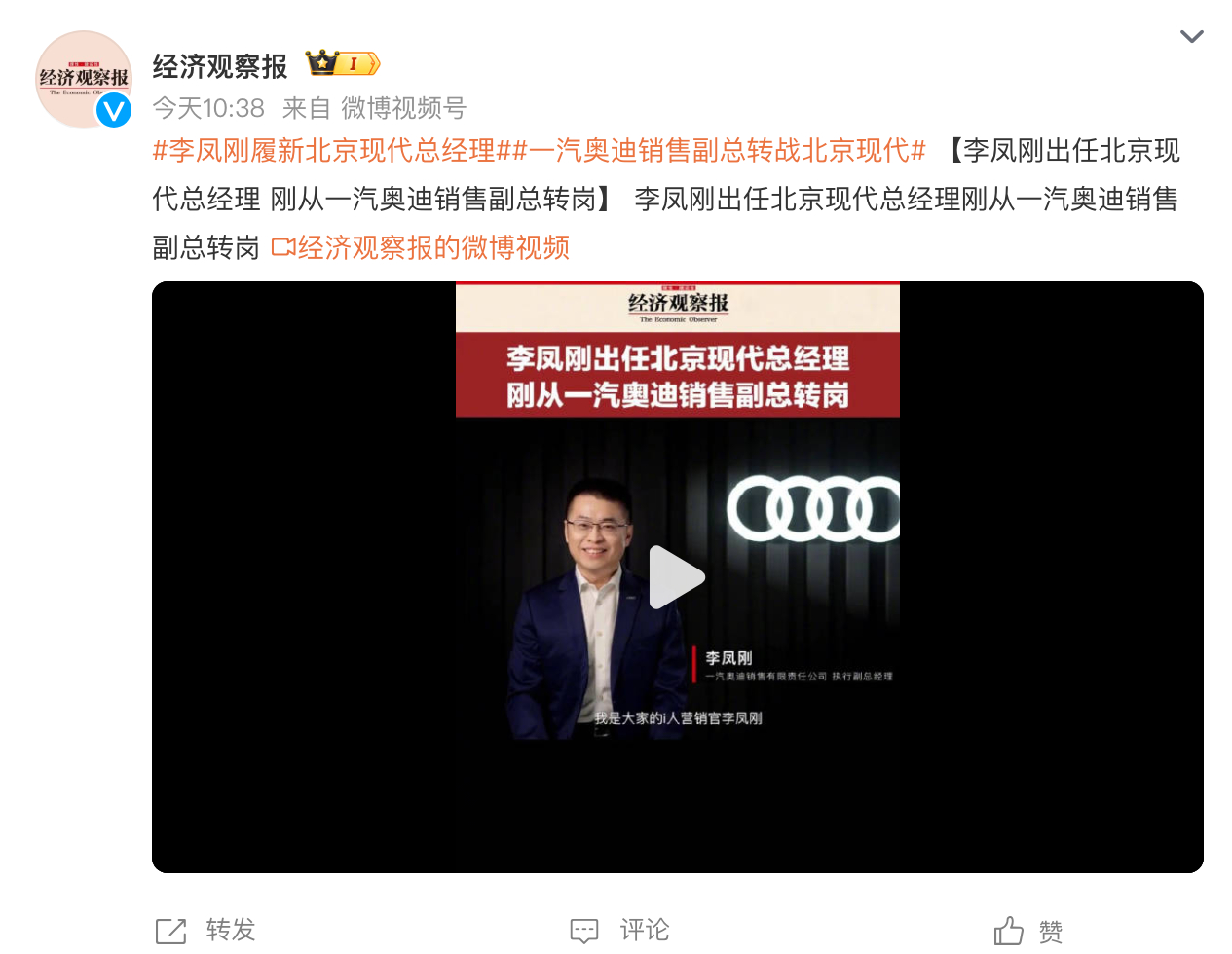 原一汽奥迪执行副总经理李凤刚出任北京现代总经理!