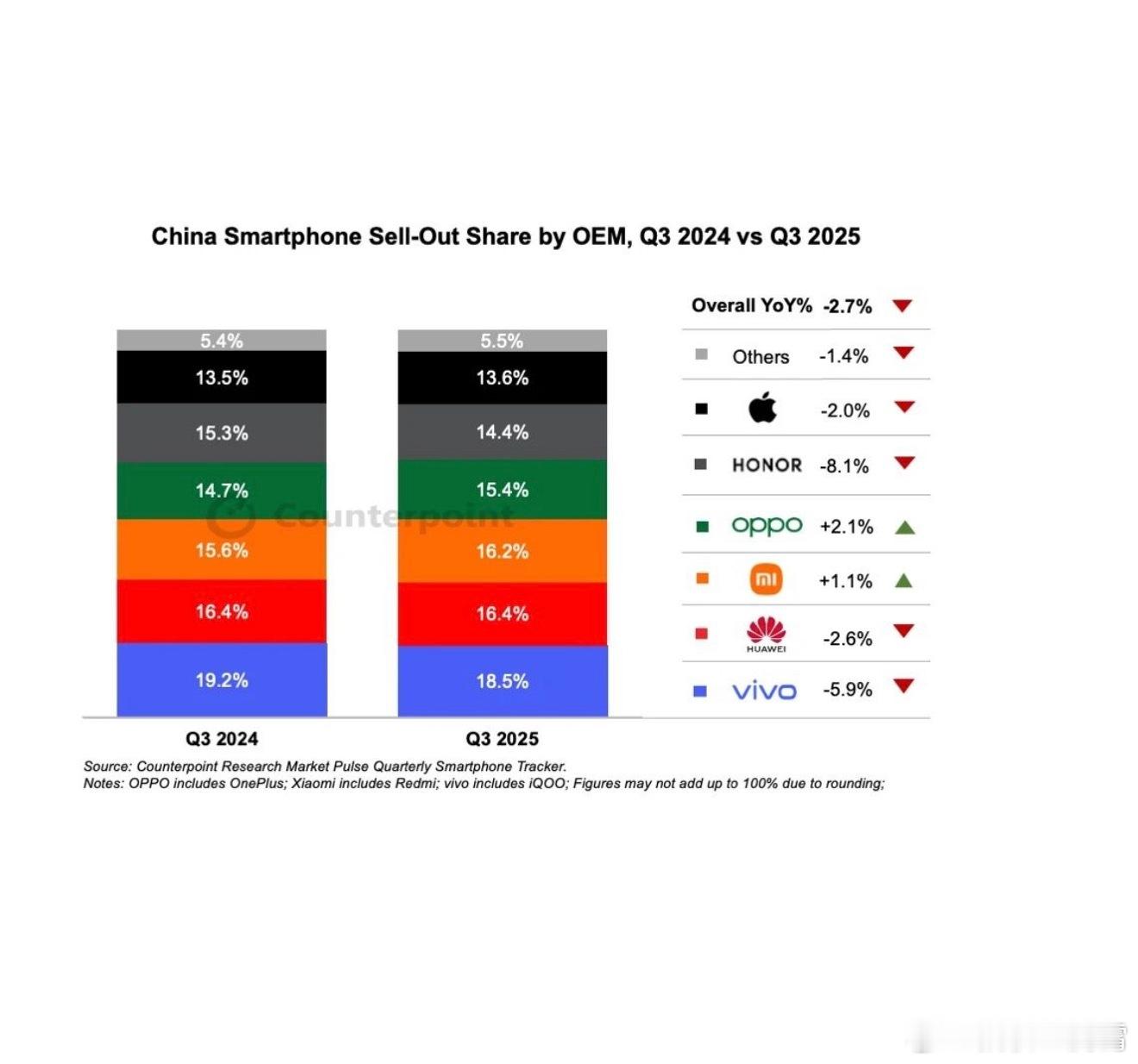 就目前两家调研机构给出的数据来看,蓝厂还是强,又拿到了Q3季度榜首,今年是否能拿下国内销量第一就看Q4季度了。华子也很强,等这个月旗舰新品发布完势必直接起飞,这排名和你们预期一致吗?[笑而不语]