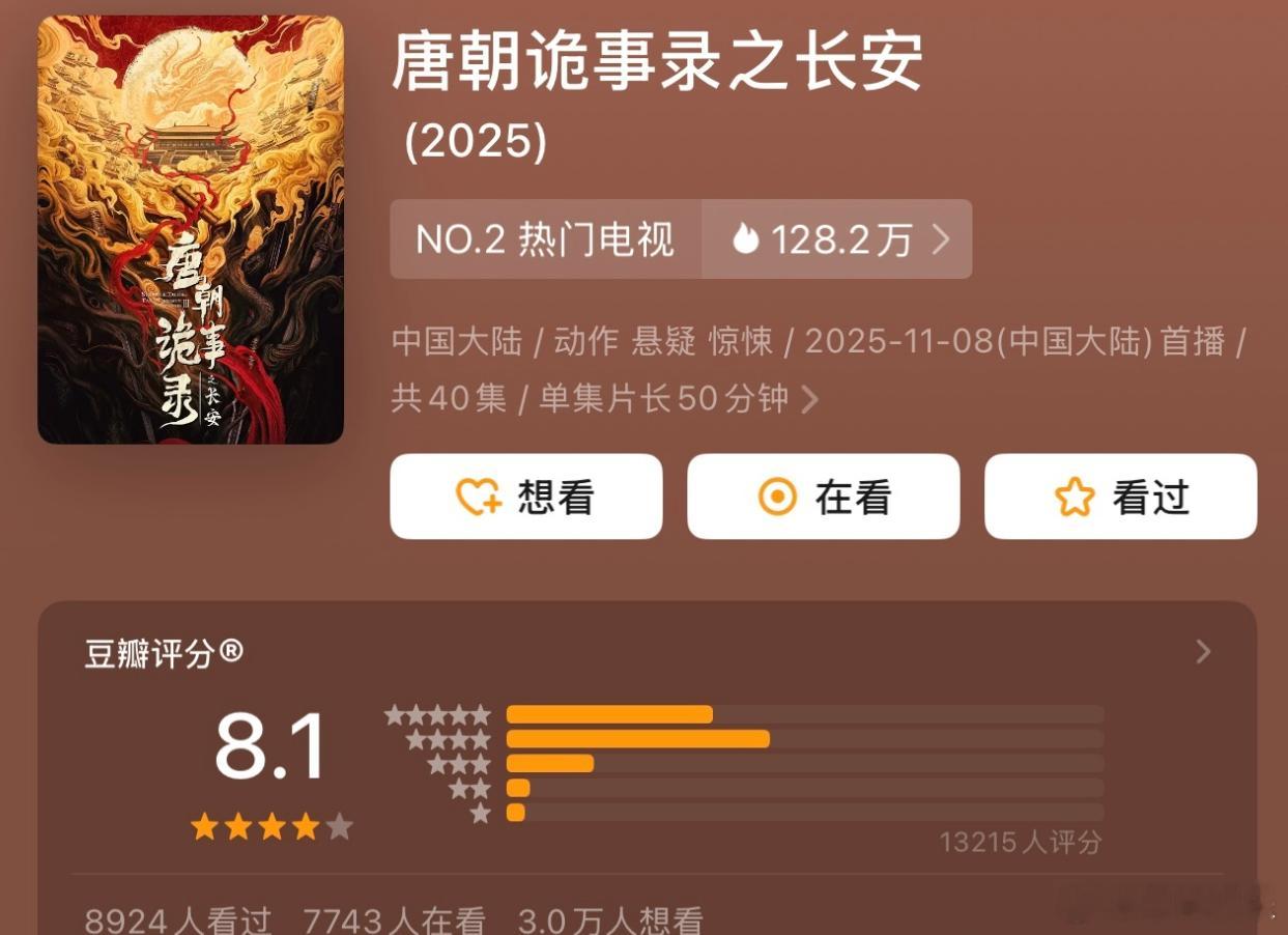 唐诡3豆瓣8.1分杨旭文、杨志刚《唐朝诡事录之长安》豆瓣开分8.1,看过的来说