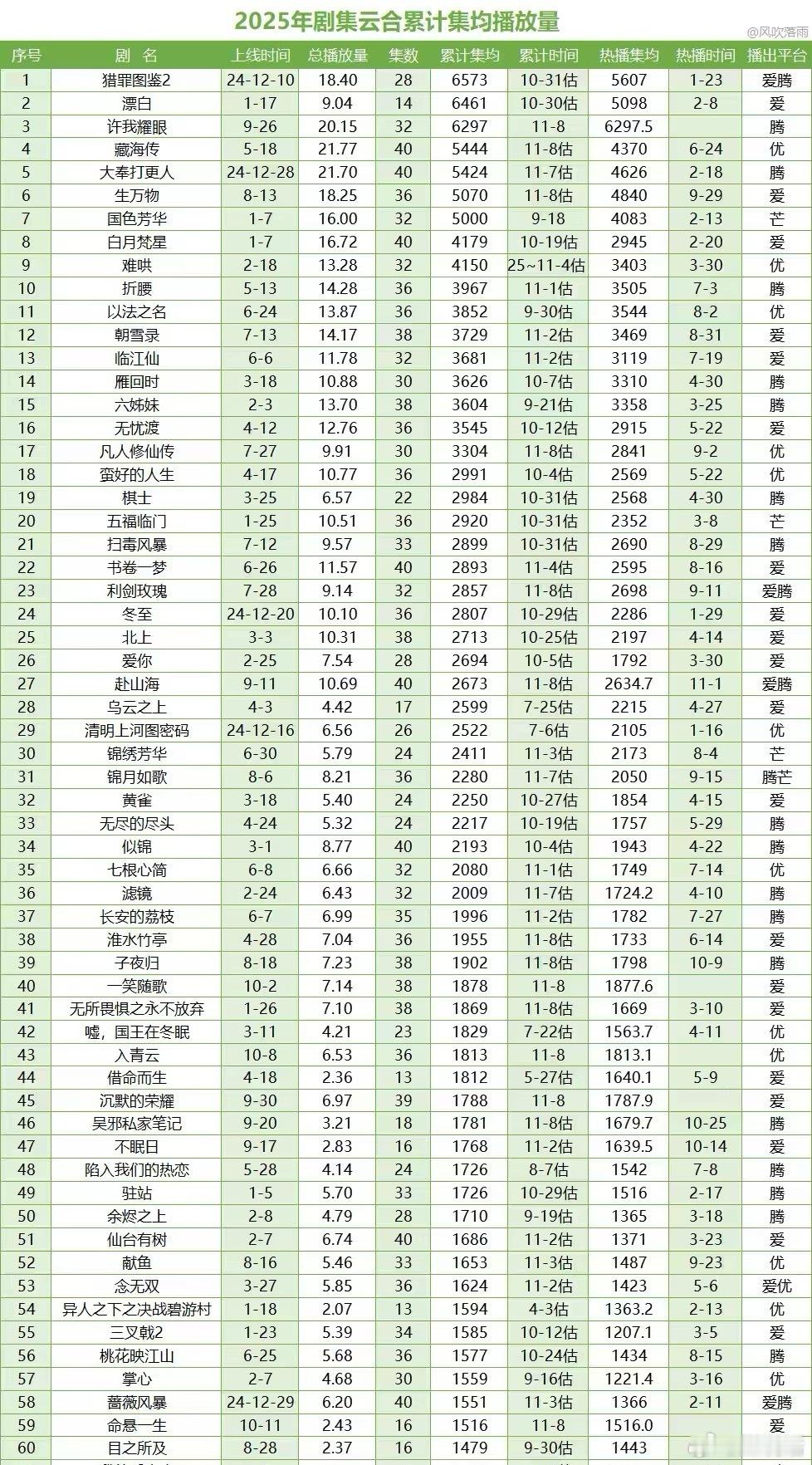 许我耀眼集均6328万 赵露思《许我耀眼》热播期集均6328万登顶年冠,同时目前累计集均年冠还是檀健次的《猎罪图鉴2》。