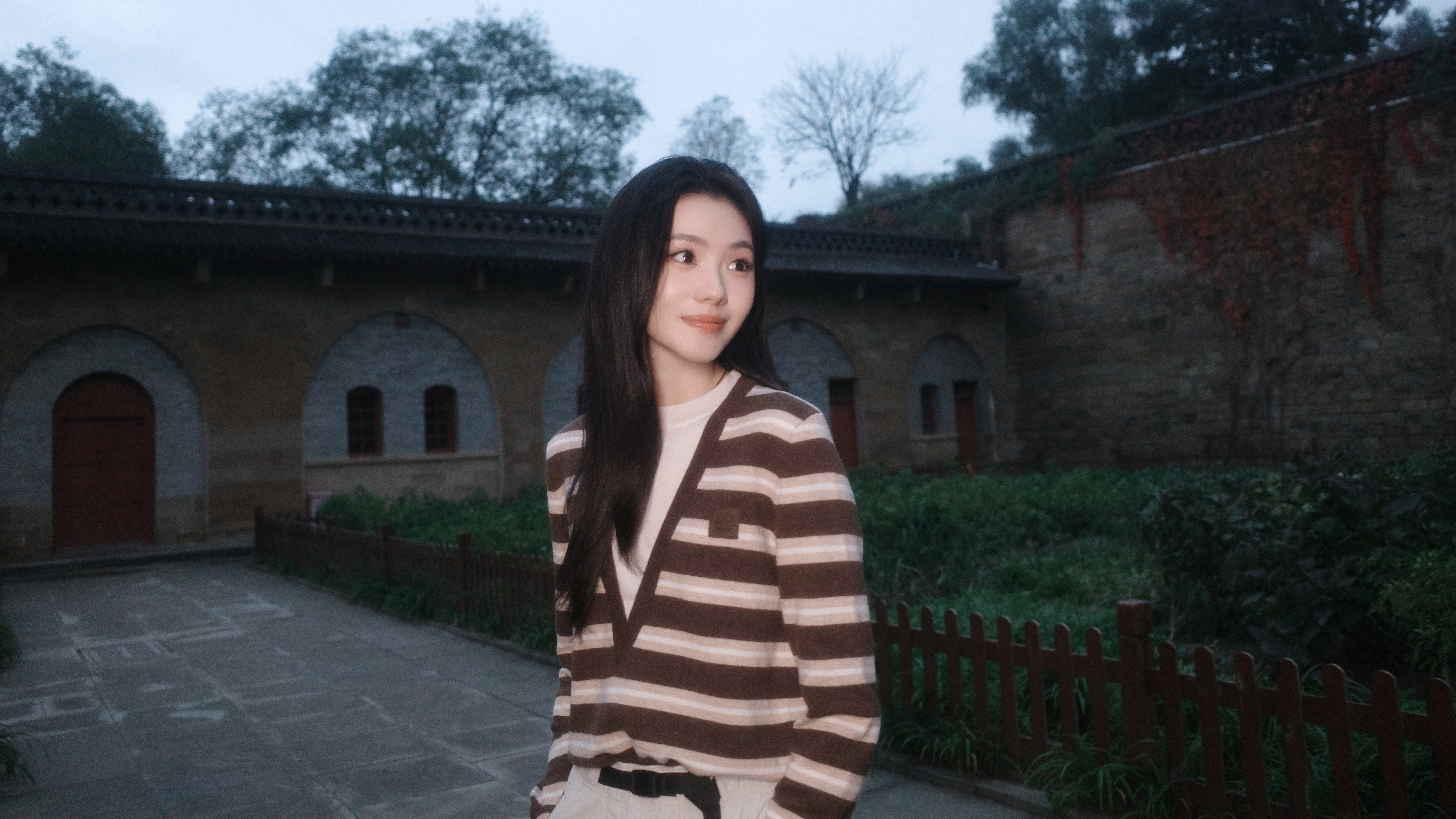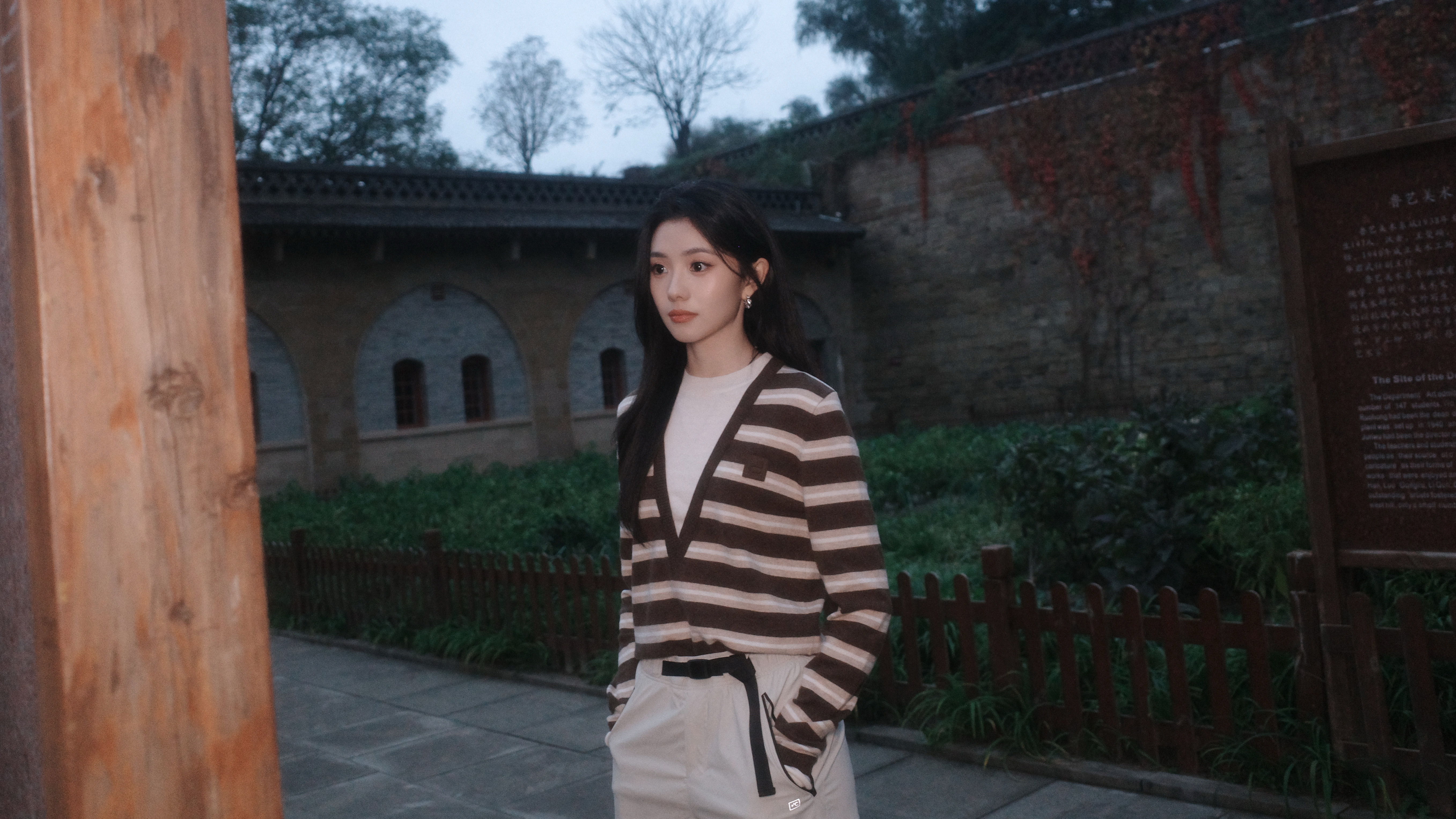 刘浩存拼色条纹上衣刘浩存的快乐记录plog
