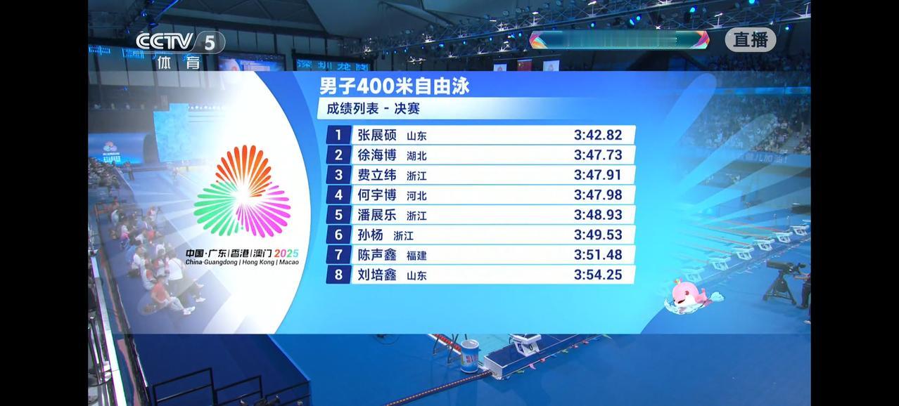 全运会游泳赛事揭幕战!男子400米超级大战,张展硕一鸣惊人,游出3分42秒82的绝对优势打破世界青年记录,一骑绝尘夺冠!潘展乐和孙杨两名奥运冠军名列第5和第6名。这可以看作是一场新老交接的比赛,孙杨的400自正式交给了张展硕了!