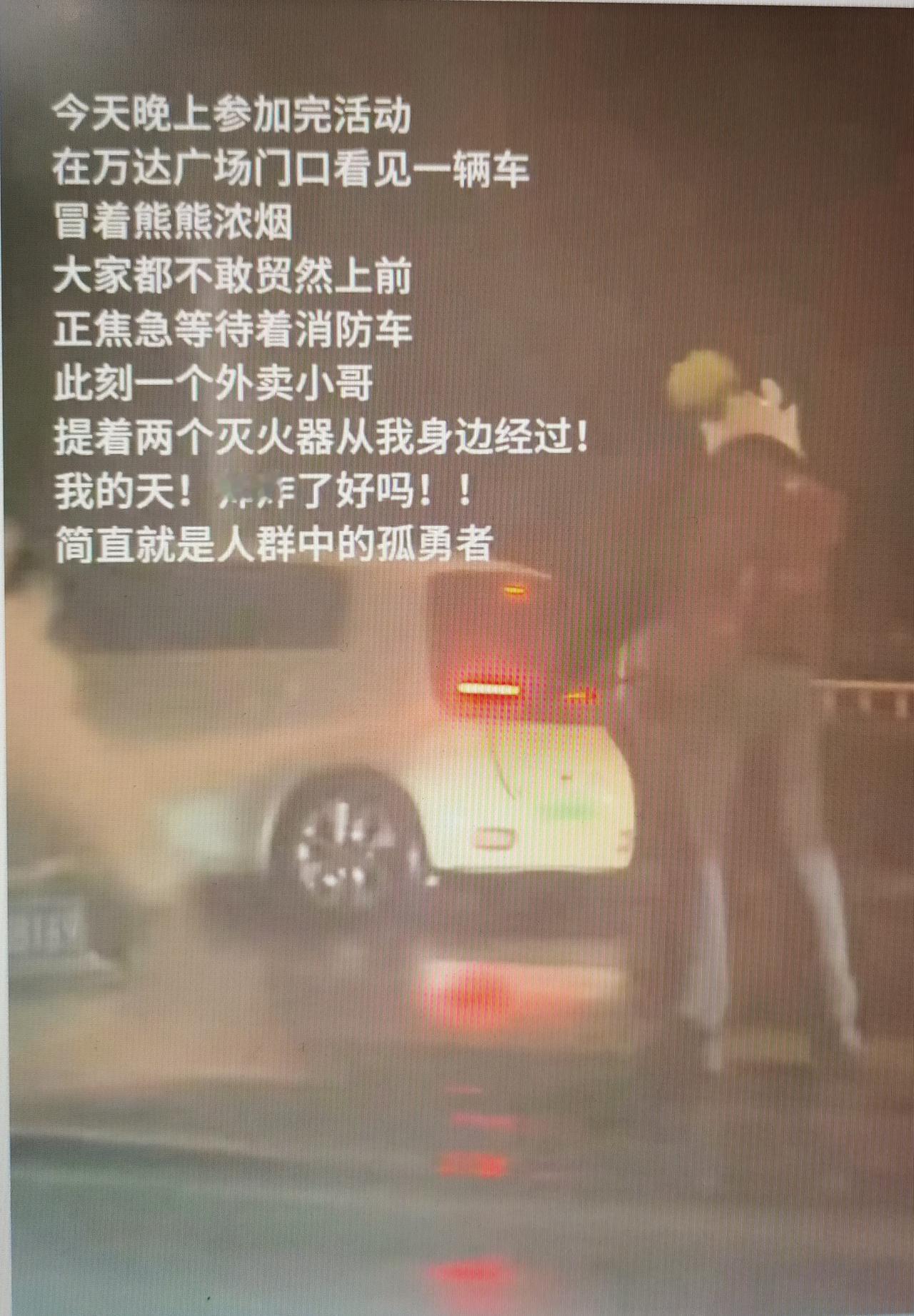 一条外卖小哥救火的视频火了,11月7日晚,山东泰安万达广场附近一车辆突发自燃,浓烟滚滚,不少人在围观。正在送餐的外卖小哥吴伟帅见状,不顾自身配送任务,从附近警务室借来灭火器挺身而出,独自扑灭火焰,待消防车赶到后才匆匆赶去送单。 此次救火导致了他5个订单超时,被扣款100余元,但他直言“碰到了就必须管”,且此前曾救过落水的小女孩。 事件发酵后,平台迅速响应,剔除全部超时订单,授予吴伟帅“先锋骑手”荣誉称号,并发放5000元见义勇为奖金,锦旗和证书。 网友们也纷纷点赞,平台的激励更是让正能量双向奔赴,不让英雄寒了心,这场正能量互动温暖了人心。