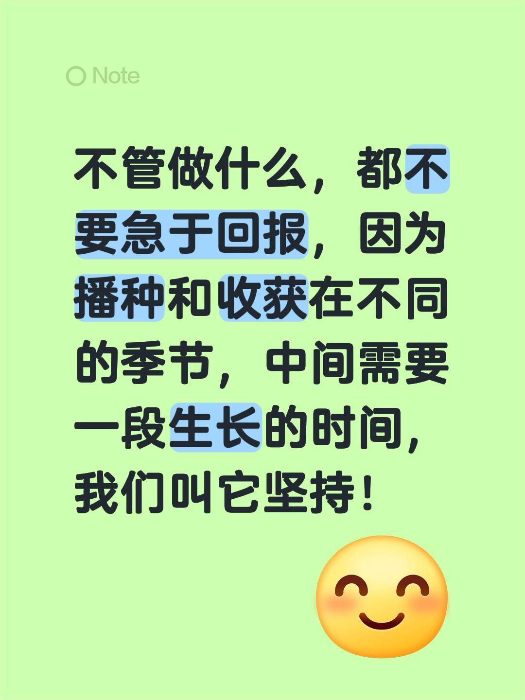 不管做什么,都不要急于回报,因为播种和收获在不同的季节,中间需要一段生长的时间,