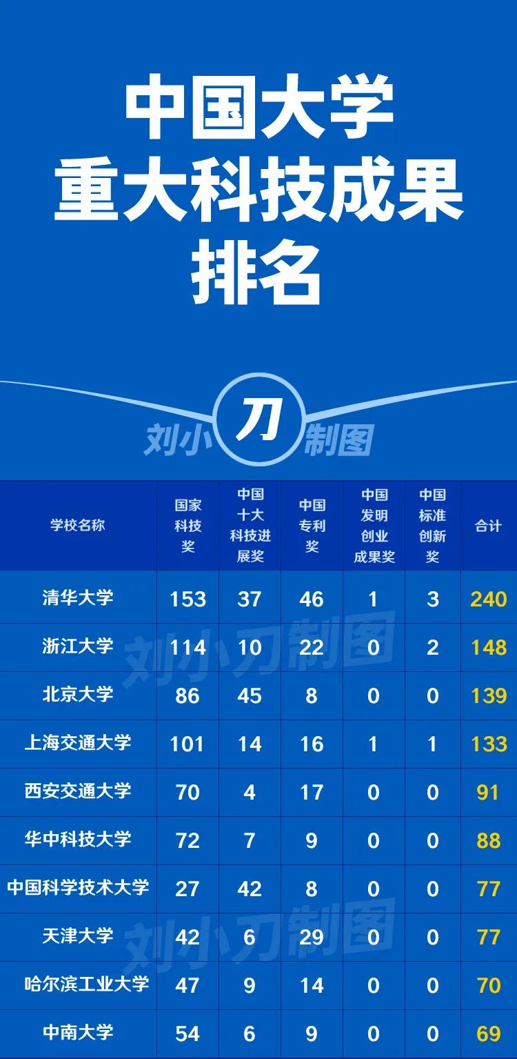 我国哪些大学重大科技成果最多? 清华大学排在第一位,而像中山大学、复旦大学、武汉大学这种传统名校,并没有排进前十。 其实要说我国历史上近代以来哪所大学最厉害,培养出的学生也最牛,当属西南联合大学。 这所大学存在于抗战时期,在战火中汇聚了清华、北大和南开三个学校的老师,虽然仅存续9年,却培养出了非常多的杰出人才。 例如曾获得诺贝尔奖的杨振宁和李政道,都曾就读于西南联大。