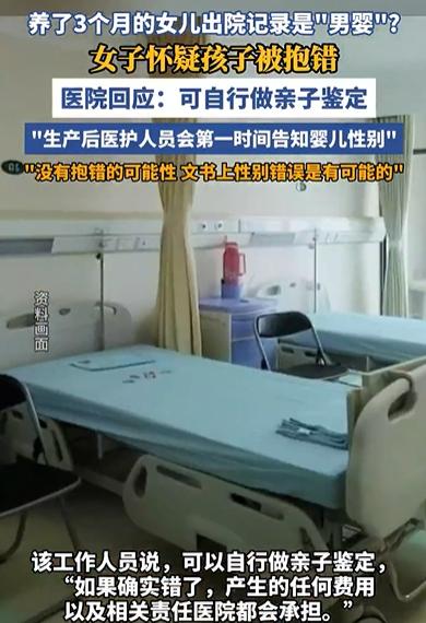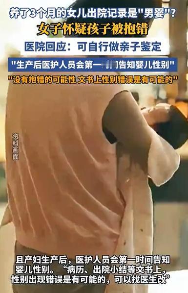 解释不清了!海南一女子生下女儿,回家养了3个月,突然发现出院记录上,写着“分娩一活男婴”,再加上那天有2人生孩子,她怀疑是不是抱错孩子了,到医院询问医生说是打错了,改一下就好了,见女子不信,医院解释:"生产后医护人员会第一时间告知婴儿性别,没有抱错的可能性,文书上性别错误是有可能的。" 在海南,一位妈妈小李(化名)生下女儿后,满心欢喜地回家坐月子,三个月里,她看着女儿一天天长大,从只会哭闹到会对着她笑,每一天都充满了幸福,直到那天,她整理孩子的出院资料,准备给孩子办理医保,却在出院记录上看到了一行让她头皮发麻的字,“分娩一活男婴”。 更让她不安的是,她清楚记得,生产当天同一家医院还有另一位产妇分娩,一瞬间,一个可怕的念头闪过:“难道我的孩子被抱错了?”她越想越害怕,立刻联系了丈夫,两人抱着孩子直奔医院。 见到医生,小李的声音都在发抖:“我明明生的是女儿,为什么记录上是男婴?那天还有别人生孩子,会不会抱错了?”医生听完,先是愣了一下,随即解释:“可能是录入时打错了,改一下就好了。” 可这个答复并没有让小李安心,她追问:“就这么简单?万一真抱错了怎么办?”医院方面随后给出了更正式的回应:产妇生产后,医护人员会第一时间告知婴儿性别,母婴同室管理也有严格流程,因此“没有抱错的可能性”,至于文书上的性别错误,属于工作疏漏,确实有可能发生,家长可以找医生修改。 为了彻底打消疑虑,医院还主动提出:家长可以自行做亲子鉴定,如果确实是医院的责任,产生的任何费用以及相关责任医院都会承担,小李这才稍微松了口气,但心里的疙瘩还在。 消息很快在网上传开,网友们议论纷纷: 有人说:“这也太吓人了,要是真抱错,一家人的人生都被改写了。” 也有人表示理解:“文书错误难免,但医院必须有更严谨的核对机制。” 还有人调侃:“这孩子三个月就经历了‘性别变更’,也是人生奇遇了。” 这件事也让大家开始关注医院文书的重要性,其实,类似的小错误在医院并不少见,名字写错、性别标错、日期不对……这些看似不起眼的“笔误”,有时会给患者带来很大困扰。 在海南医科大学第一附属医院,工作人员表示,产妇生产后,医护人员会在第一时间告知婴儿性别,母婴同室期间也有严格的身份核对流程,因此抱错的可能性极低,但文书录入环节确实存在人为失误的风险,医院会加强培训和审核,避免类似问题再次发生。 对于遇到这种情况的家长,医生建议:首先保持冷静,保留好所有证据,其次及时与医院沟通,了解情况,如果仍然有疑虑,可以通过亲子鉴定等科学手段解决,最重要的是,相信医院会负责到底,不要让焦虑影响自己和孩子的生活。 这次事件也提醒我们,医疗文书的准确性和严谨性至关重要,它不仅是一份记录,更是关乎生命和家庭的重要凭证,医院需要不断完善管理流程,患者也需要提高自我保护意识,遇到问题及时沟通,共同维护医疗安全。 那么,你怎么看待这件事呢?如果你遇到类似情况,会选择做亲子鉴定吗?欢迎在评论区分享你的看法。