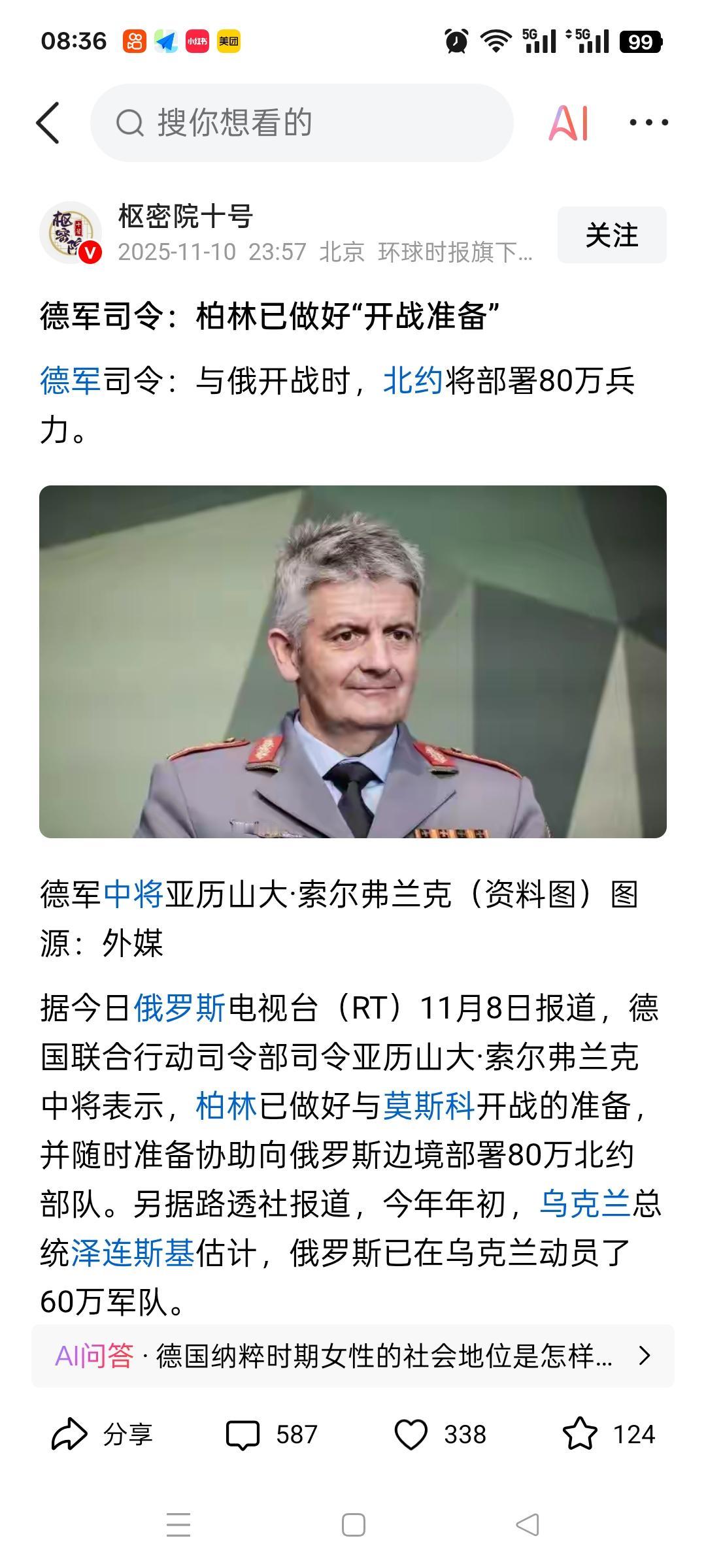 纳粹德国又宠宠欲动呢?? 默克尔时代追求的现实主义外交,现在的德国被意识形态所裹挟,没有一点理智,完全冲昏了头脑。 要知道二战时候是德国入侵苏联,而不是苏联入侵德国,那么德国紧张什么呢? 意识形态偏见,白人至上主义作祟!